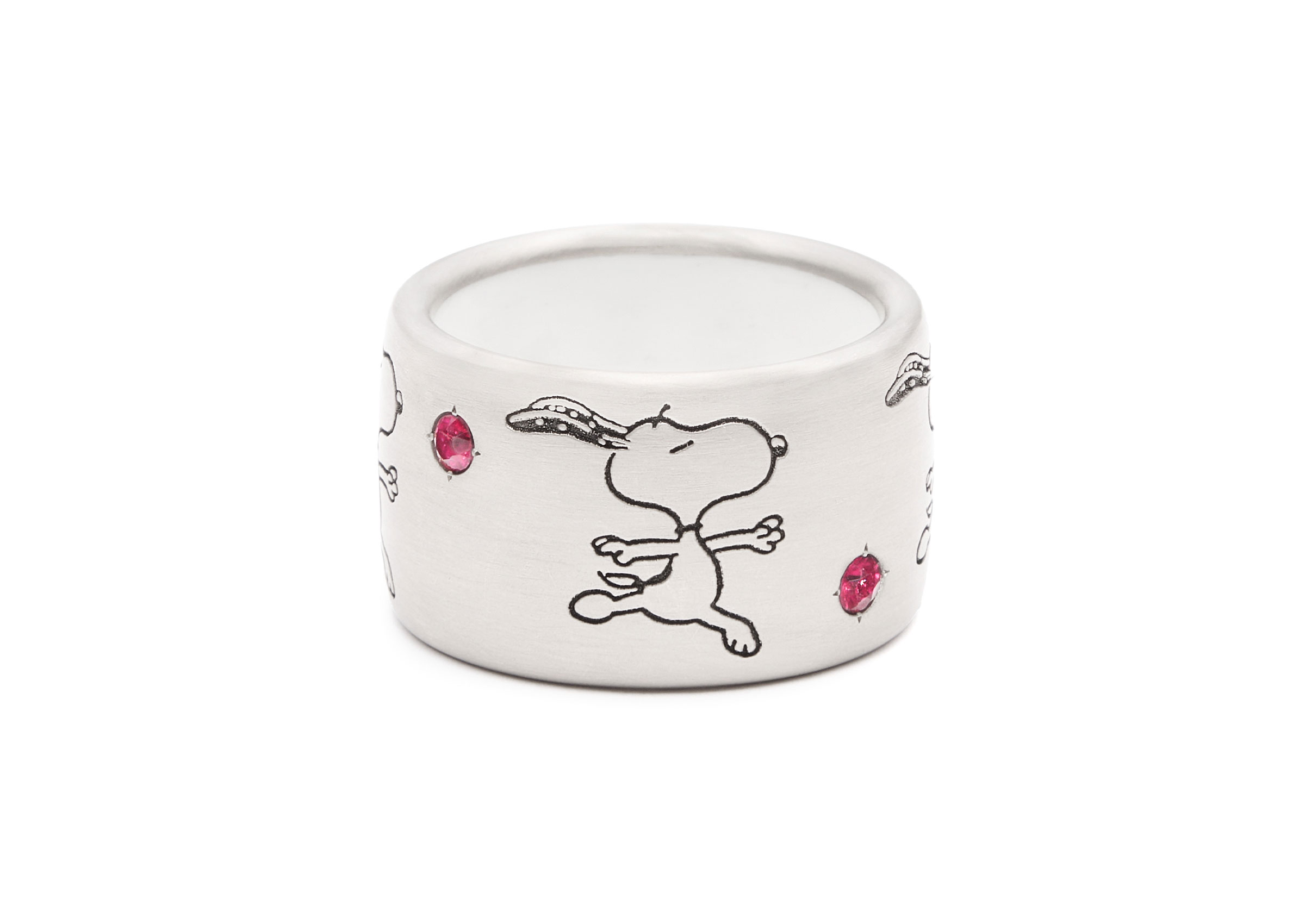 White gold and rubies combine in a band that merges nostalgia with radiant color.