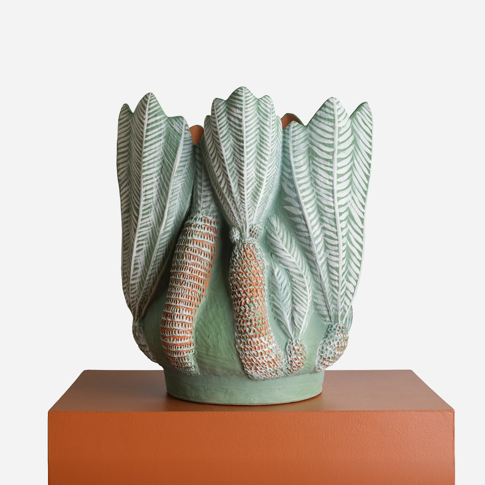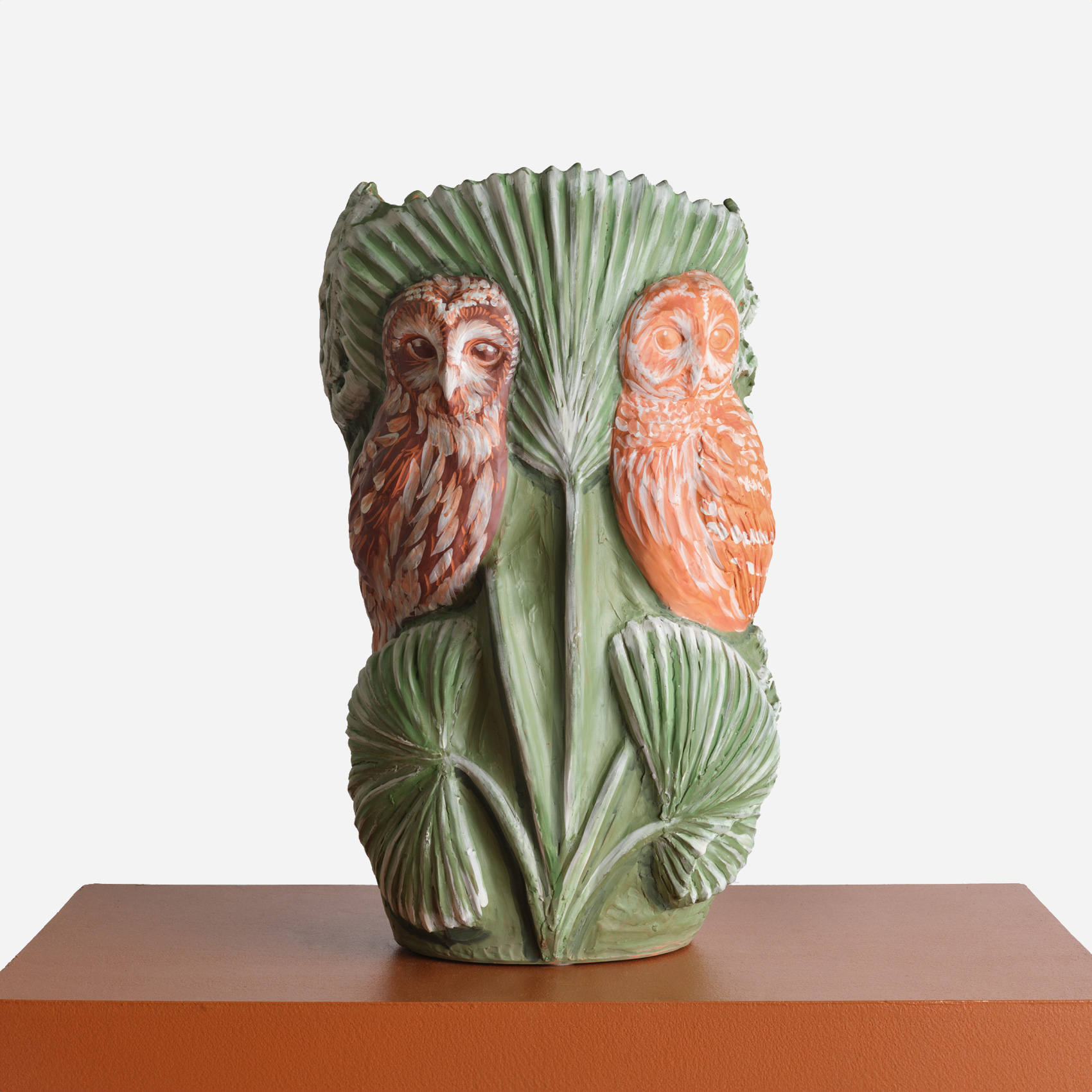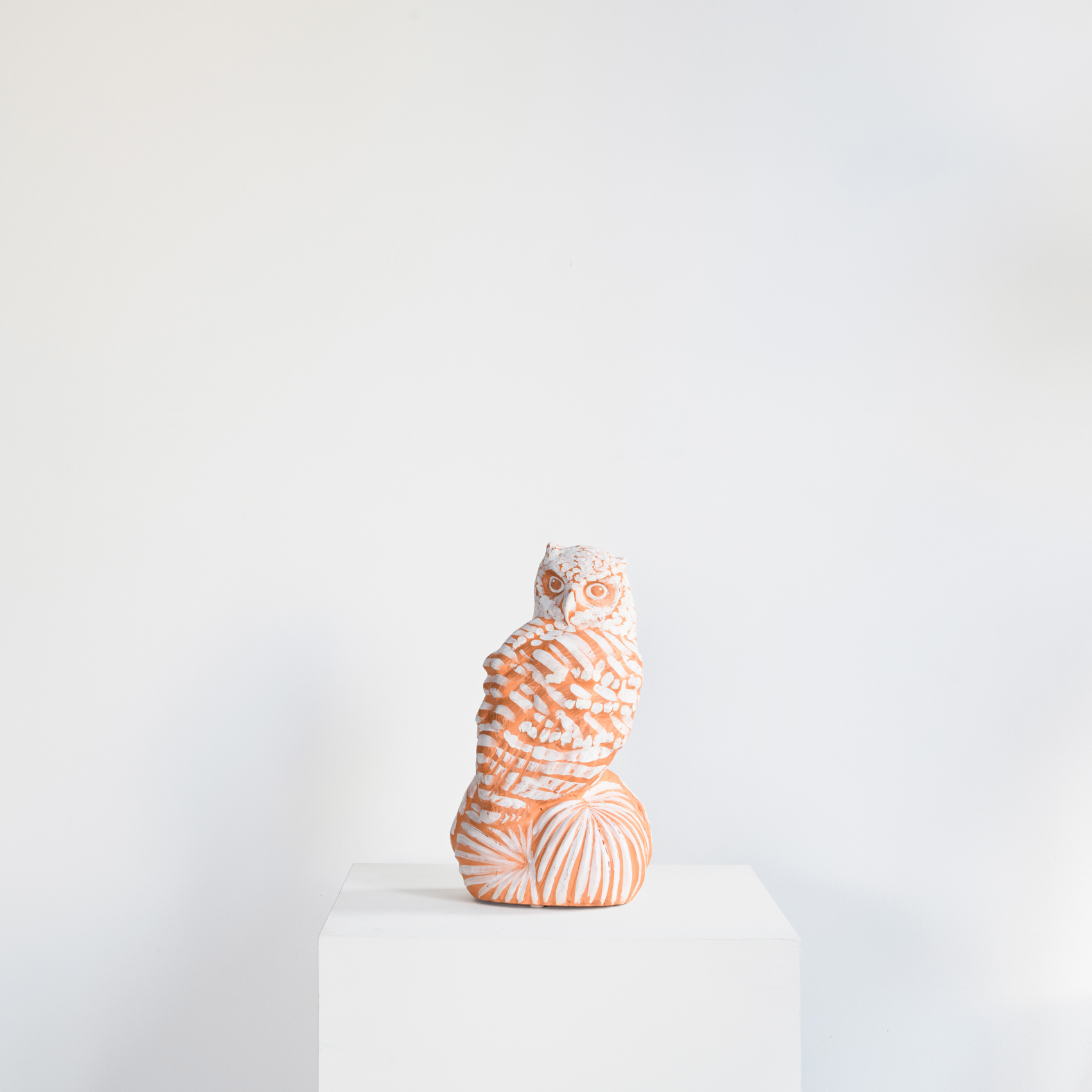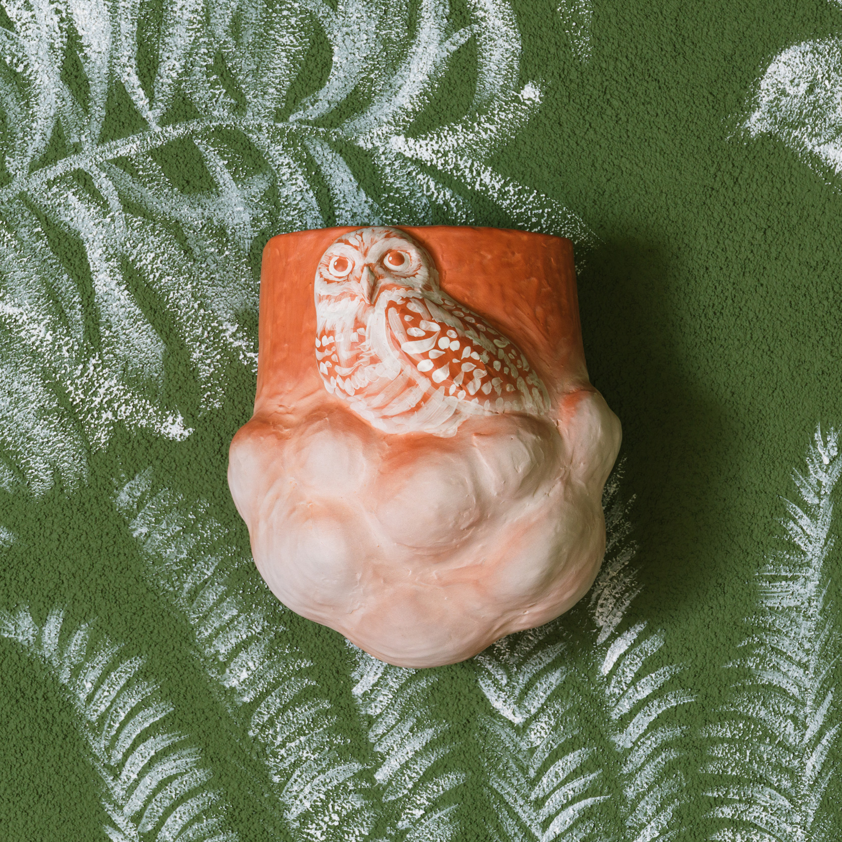 Myungjin Kim’s Hoot & Bloom series explores the artist’s renowned exploration of owls as both an iconographic archetype and an ecological specificity. Rendered in terracotta and possessing a delicate range of color, these works are airy but substantial, presenting a poetic understanding of our world and the place of life within it.