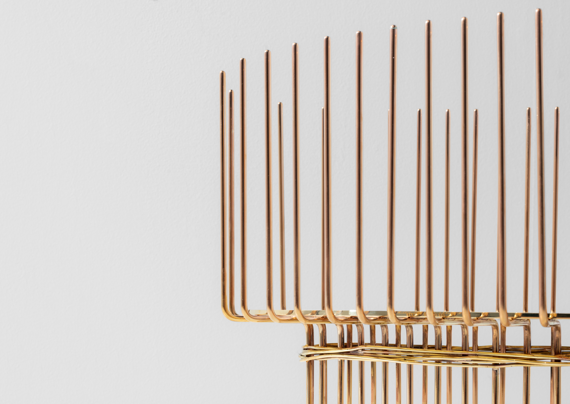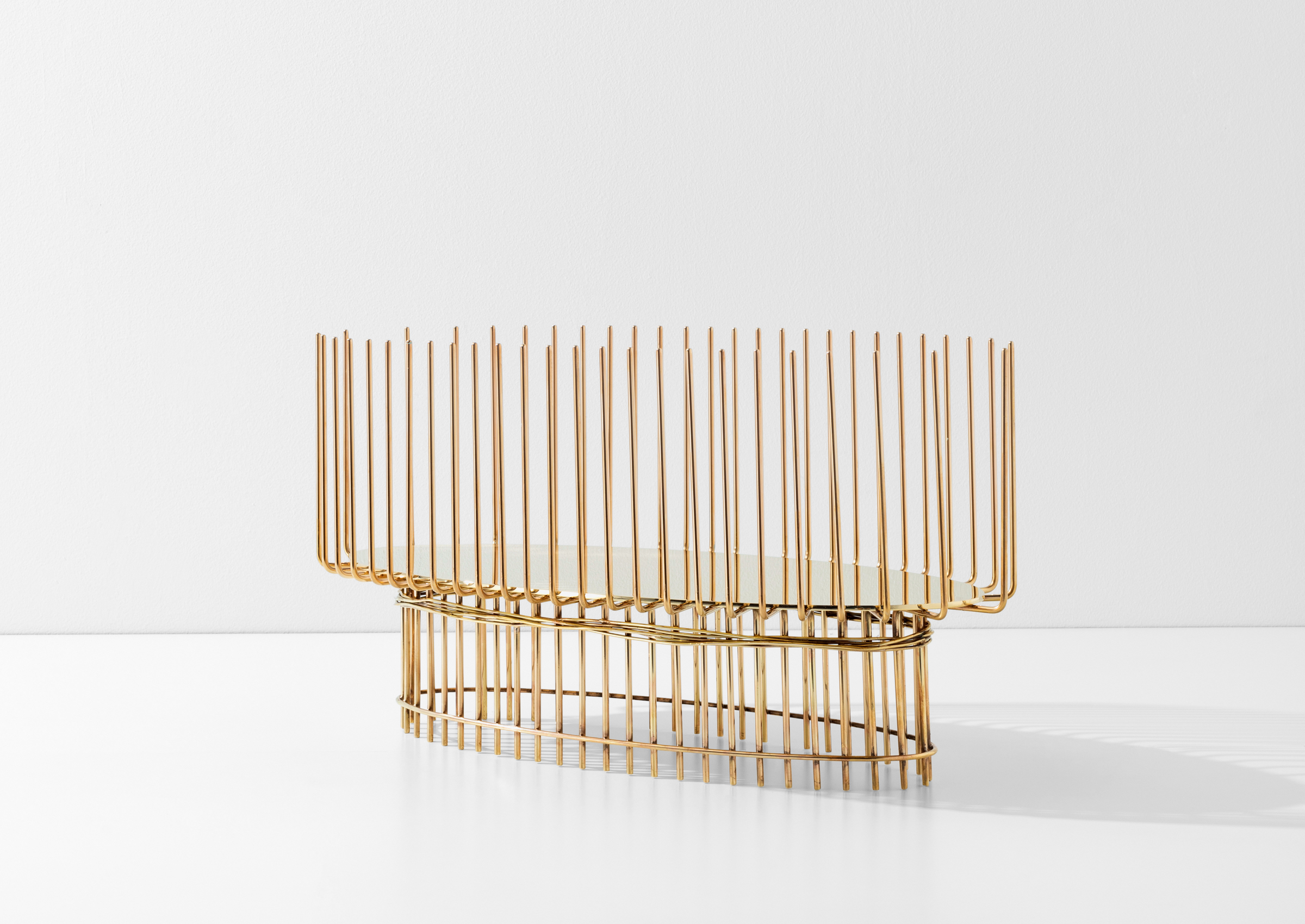Decorative object in polished brass and oxidized brass detailing. Internal tray in polished brass.