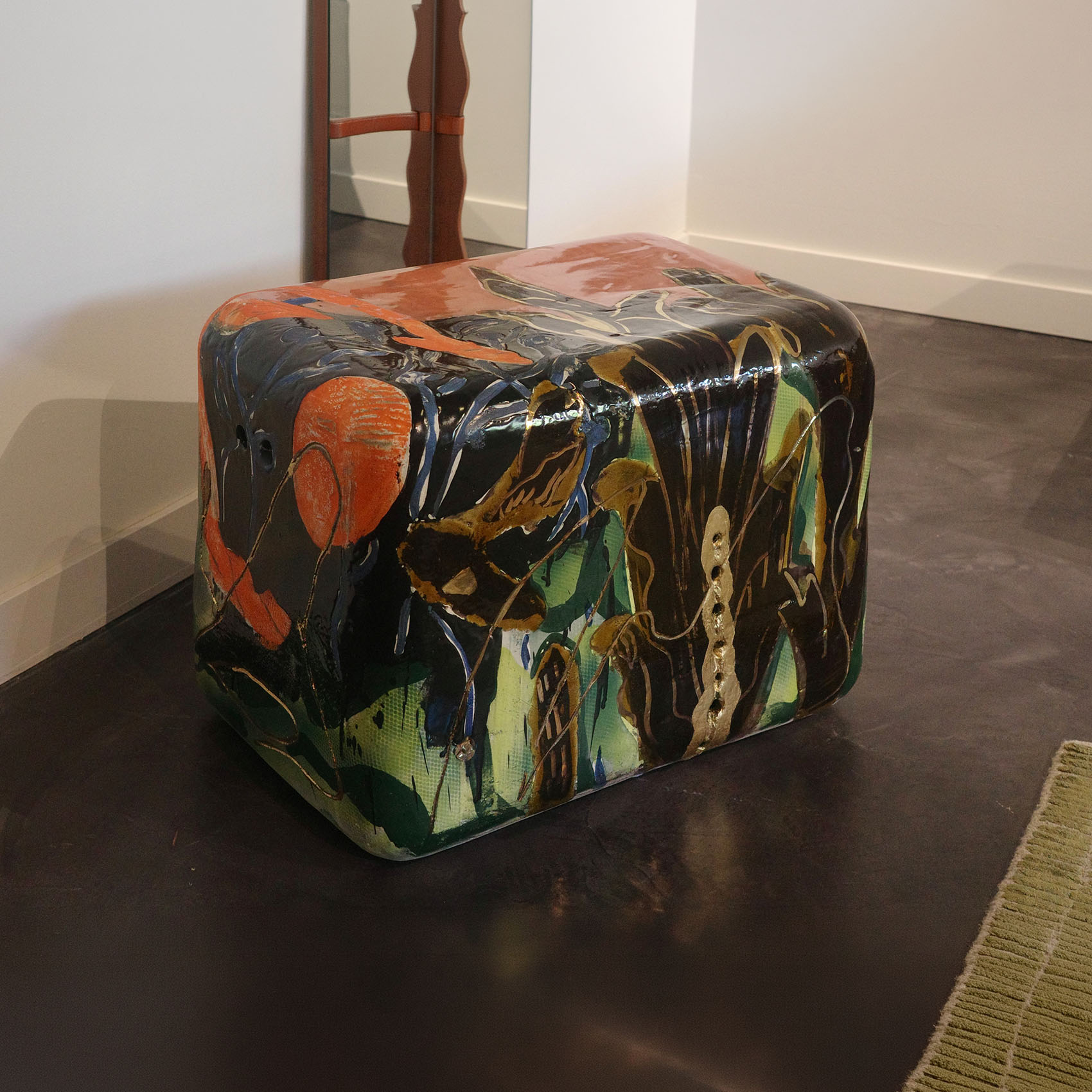 Venezuelan born and New York City based artist Reinaldo Sanguino creates one-of-a-kind original ceramics, using clay as both structure and canvas. His ceramic pieces are known for their freely worked surfaces, variety of rich colors, and patterns, which are integral to his forms. Sanguino creates startling directional pieces that reference New York City’s ineffable energy.