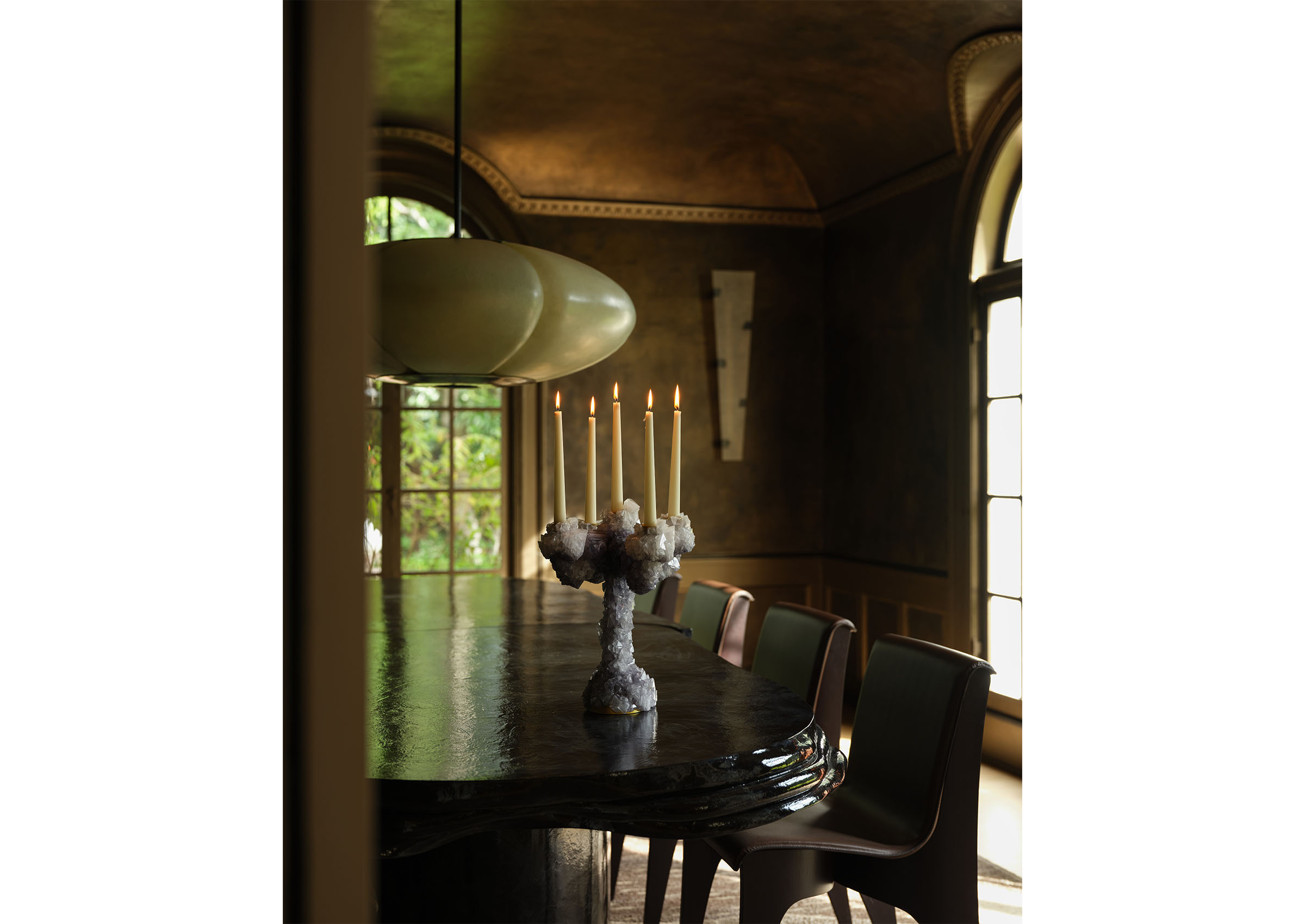 Atelier Mark Sturkenboom designed a fluid, based on minerals, which allows objects to grow crystals over a period of time. He reclaimed antique French chandeliers and candelabra and created the perfect conditions to set a hyper-evolution in motion where every object grows out to be a unique piece, a modern interpretation of a crystal chandelier. These pieces are part of Sturkenboom’s ongoing fascination of the influence that hyper-deterioration has on modern life, glimpsing in the future.