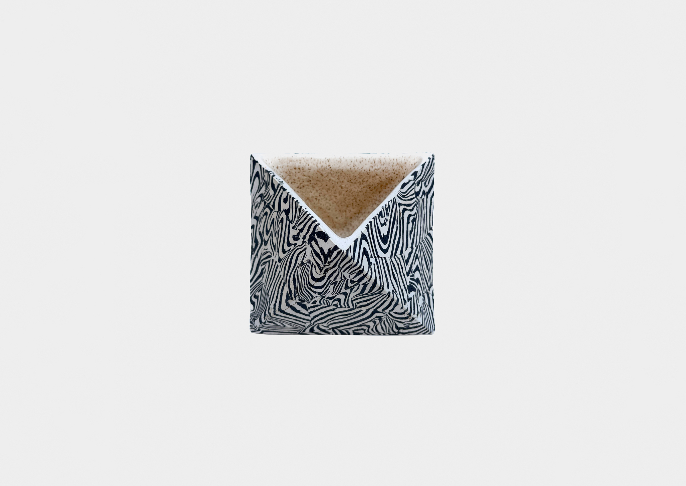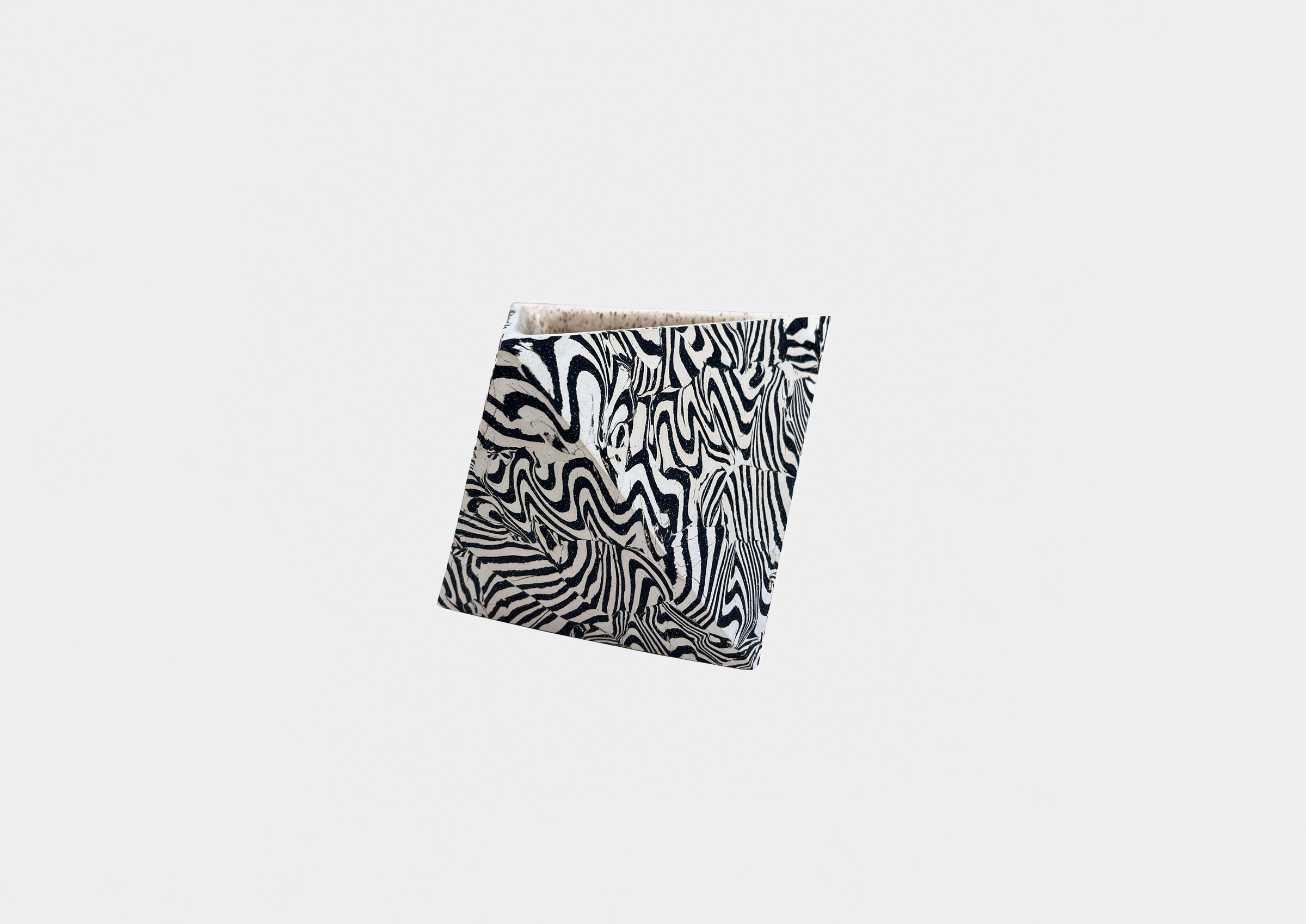 American artist Cody Hoyt combines graphic compositions with three-dimensional forms in his unconventional ceramic-fired vessels. With a background in painting and printmaking, Hoyt's two-dimensional artistry informs his sculptural creations. He draws inspiration from various sources, including ancient Japanese pottery and contemporary typography. Hoyt's technique involves layering and manipulating colored clay into striking, hand-layered striping that enhances his bold angular shapes. His sculptural skill and vibrant color usage make his work truly remarkable.