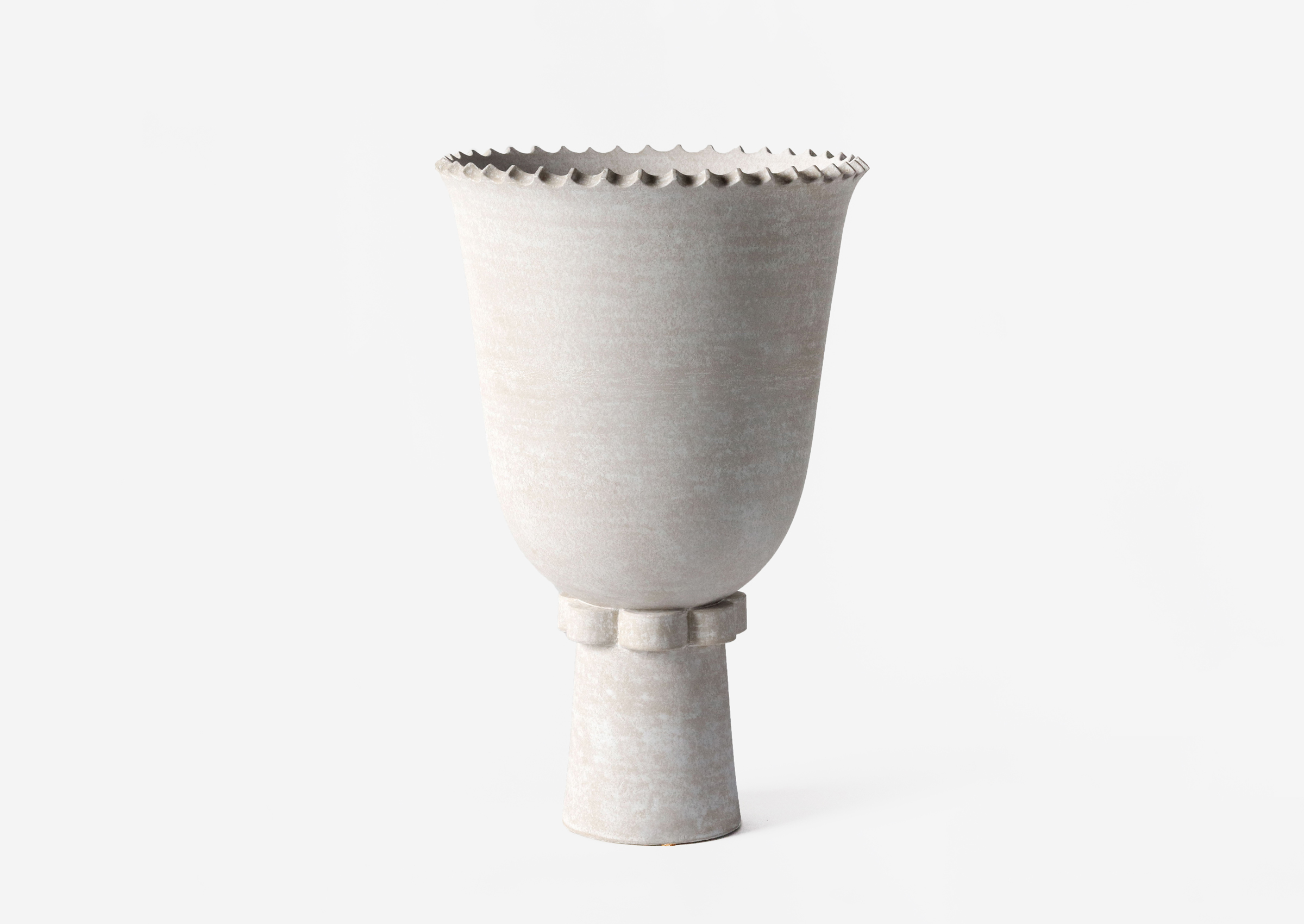 Eric Roinestad's ceramics employ an iconographic language to explore the deeply personal. With a background in graphic design, he wields an instinct for pictorial dialect, infusing his work with both universality and intimacy. His evolution harmonizes diverse aesthetics into a uniquely original approach. Taking influences from Bauhaus pioneer Oskar Schlemmer and the southern California landscape, Roinestad's artistic journey embodies his innovative vision.