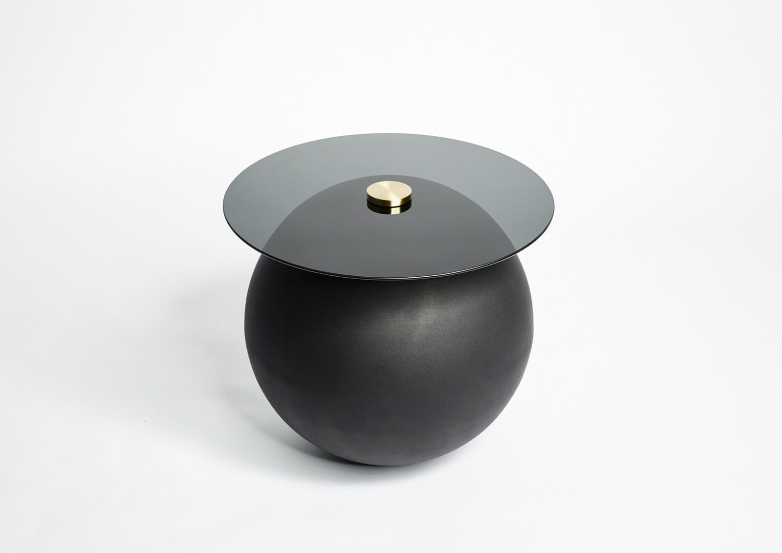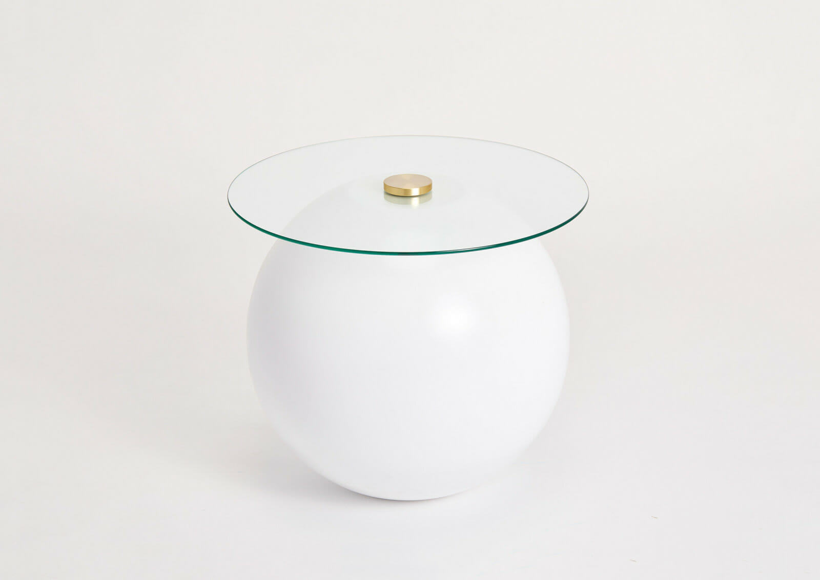 The Pluto Table is a small table suitable for both indoor and outdoor use. A .25" sheet of glass sits atop a stout aluminum base, which is finished with a UV and weather resistant powder coat and is offered in a variety of powder coating options. The signature bolt, which secures the top to the base, is available in brass (as shown) or coated to match the base. Custom glass specifications and powder coat colors upon request.
