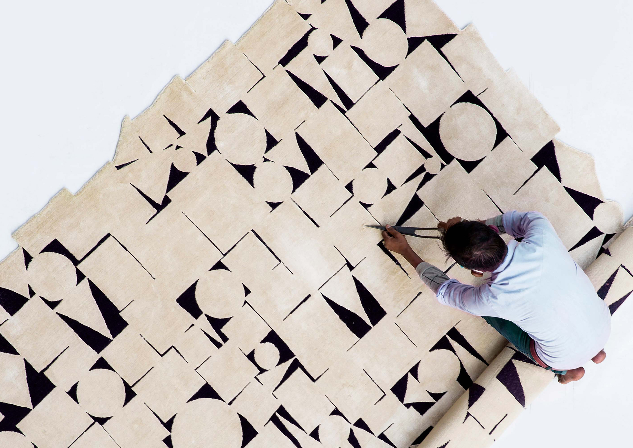 Équilibre, not unlike the balancing rocks, is a rendition of raised geometrical variations of 3 shapes juxtaposed along the surface to create a balance. Just as in nature one supports the other, seemingly imbalanced they are firmly in place. Take one away and all collapse.