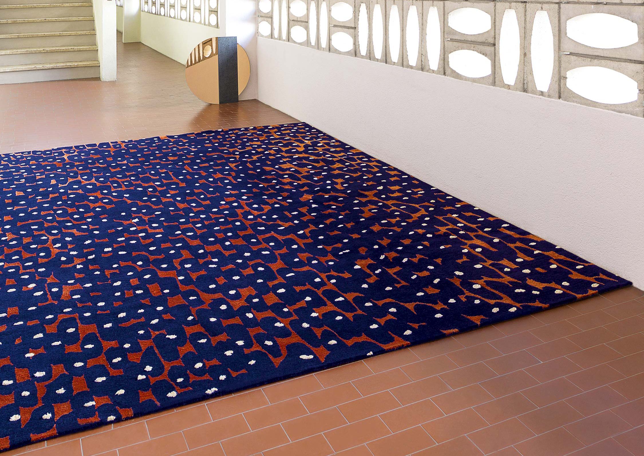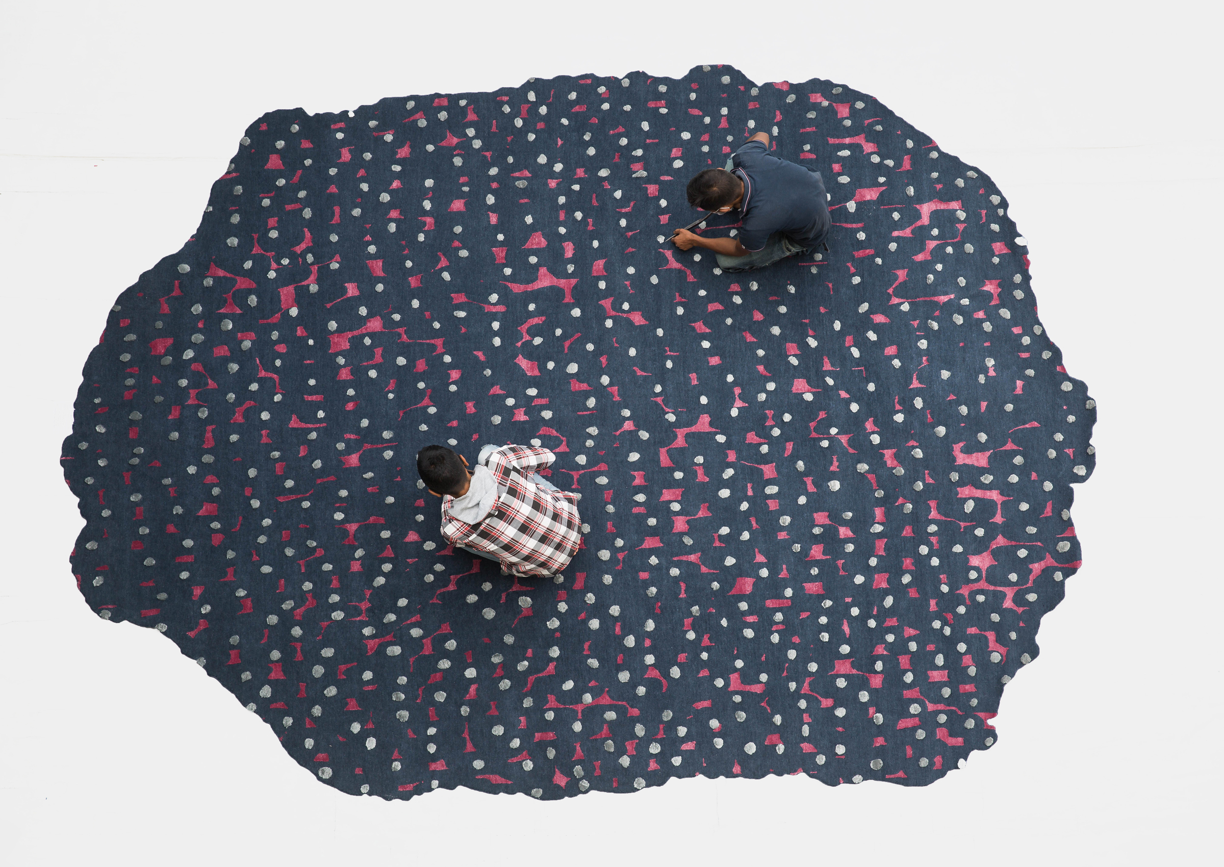 Atelier Février’s hand-knotted Nueze Rug is part of the new A Point collection, which was imagined by the designers as interpretation of the patterns formed by the flight of migrating birds. The Nueze Rug creates a visual illusion with its undulating patterns and raised pom pom surface.