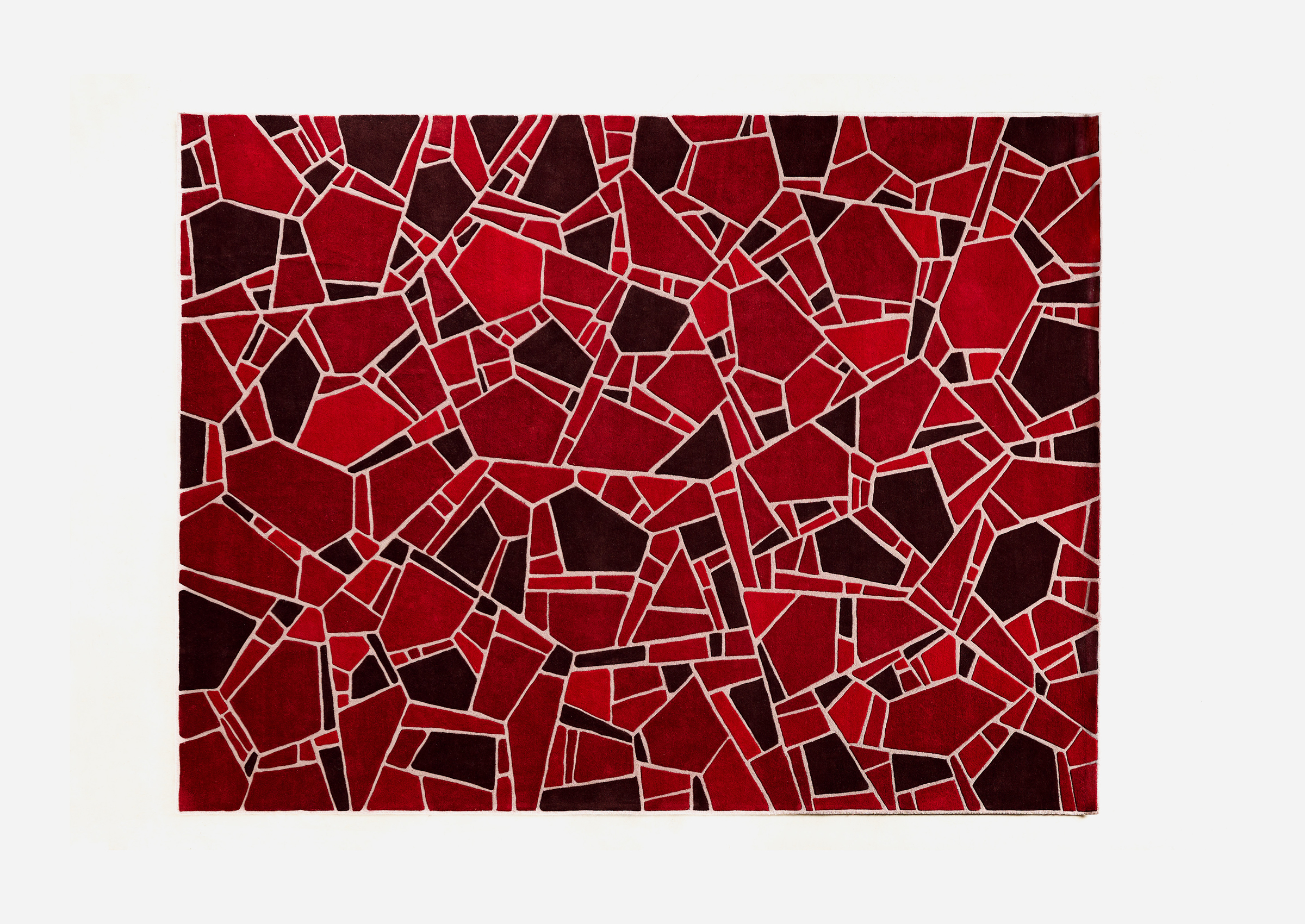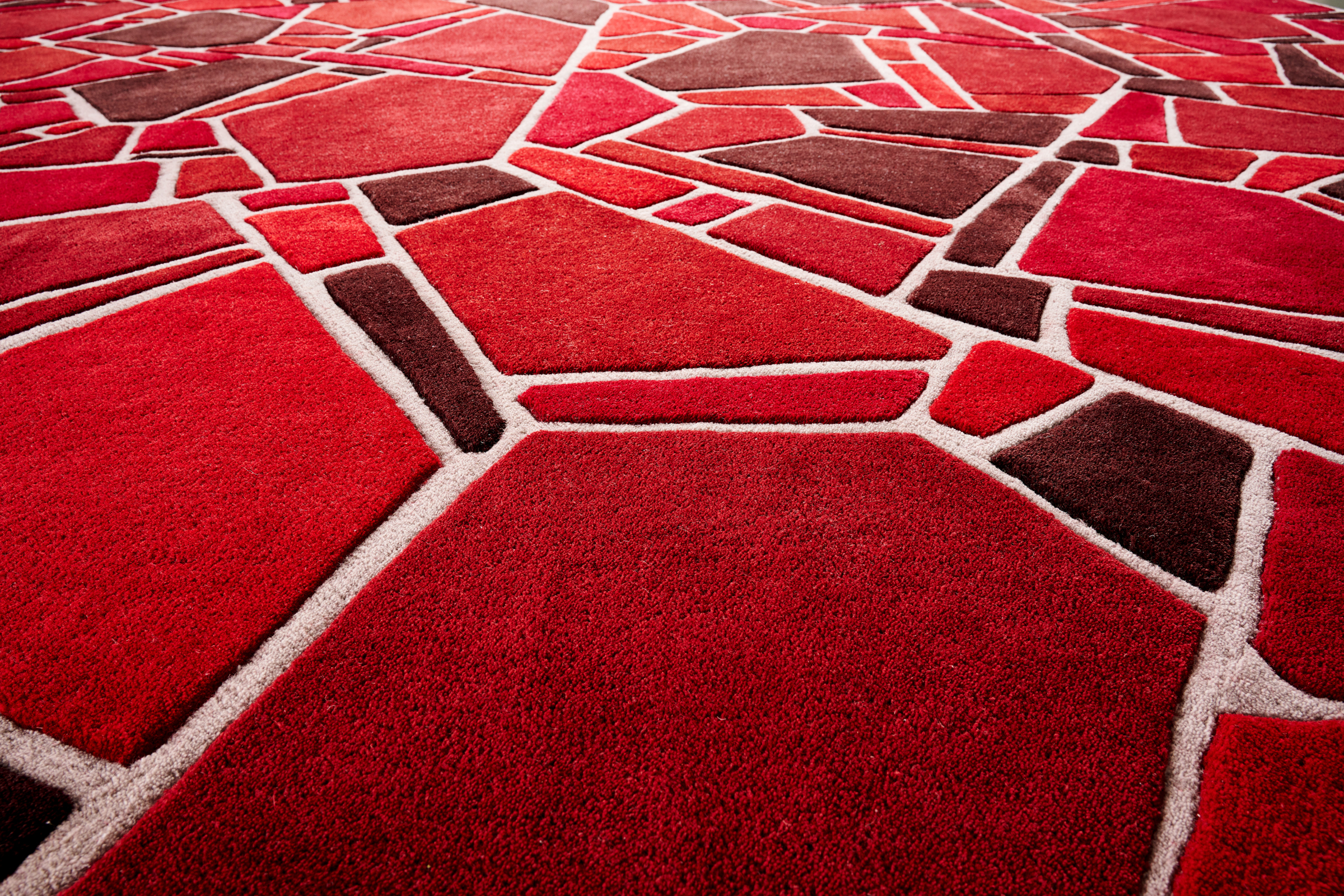 Inspired by traditional Chinese ice-ray lattice designs, which mimic the cracking of ice on a late winter’s pond, the Saturday carpet represents a faux mosaic style. Made from hand-tufted wool, its rich red hues and geometric collage offer a vivid display to highlight an interior setting.