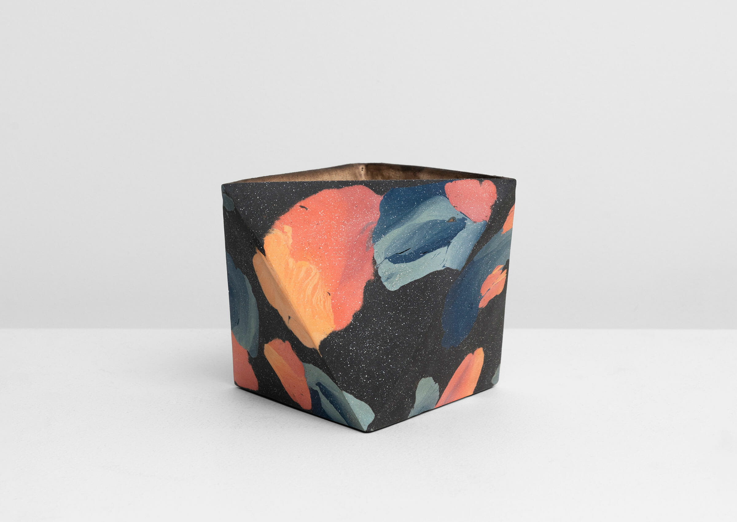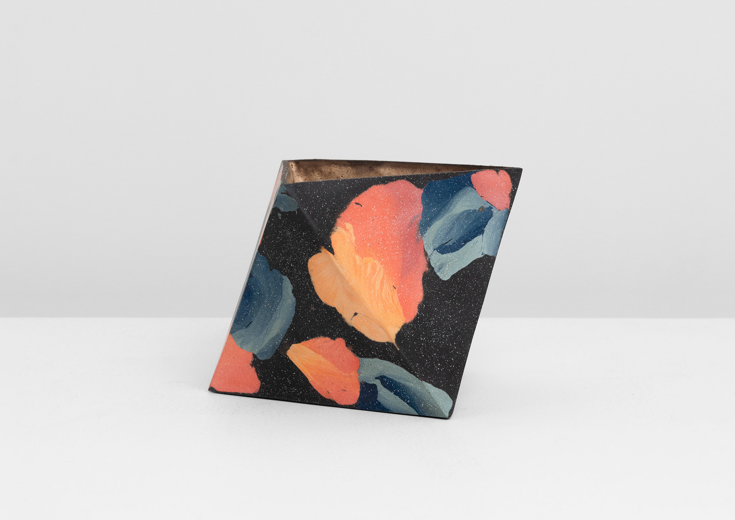 American artist Cody Hoyt combines graphic compositions with three-dimensional forms in his unconventional ceramic-fired vessels. With a background in painting and printmaking, Hoyt's two-dimensional artistry informs his sculptural creations. He draws inspiration from various sources, including ancient Japanese pottery and contemporary typography. Hoyt's technique involves layering and manipulating colored clay into striking, hand-layered striping that enhances his bold angular shapes. His sculptural skill and vibrant color usage make his work truly remarkable.