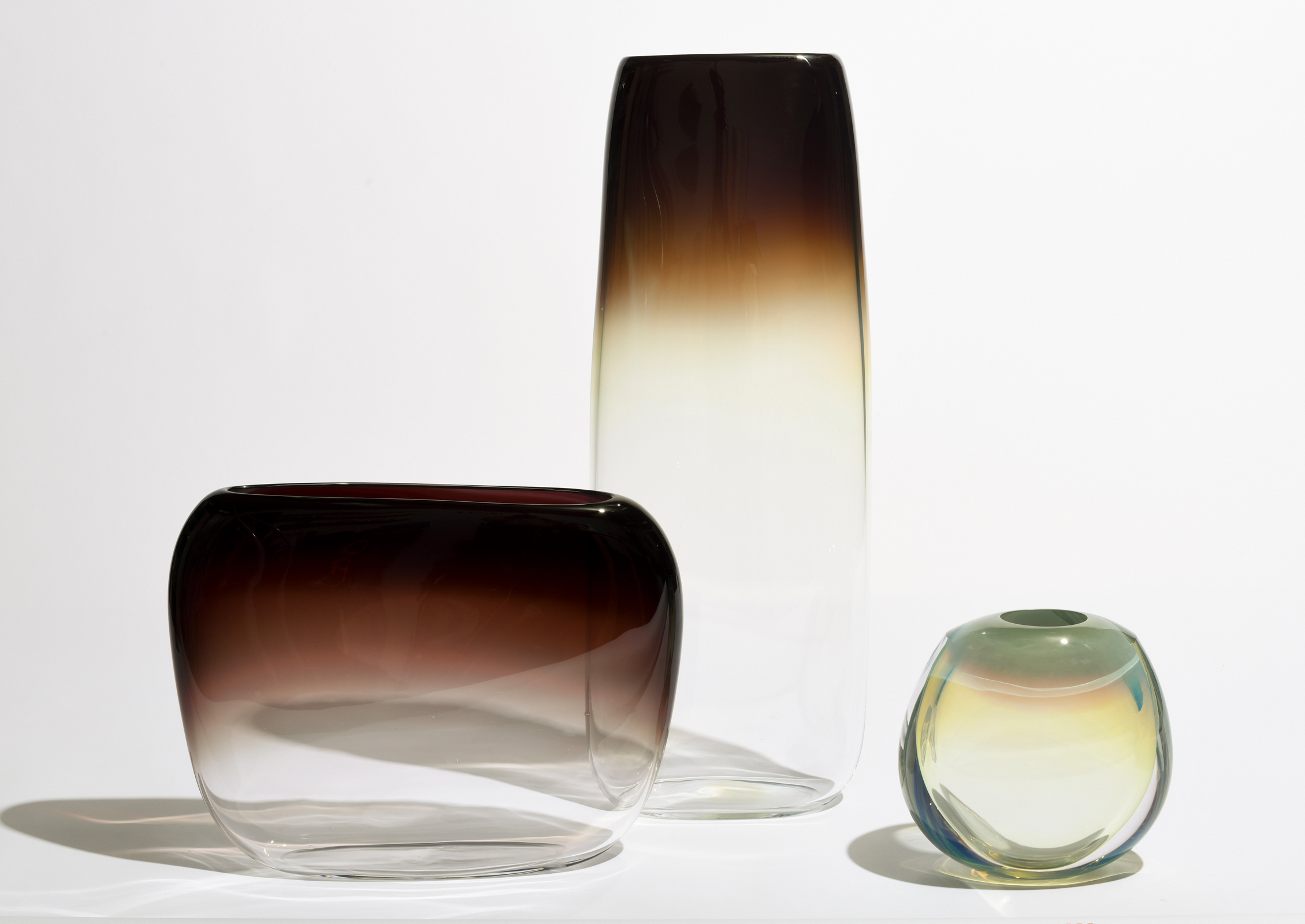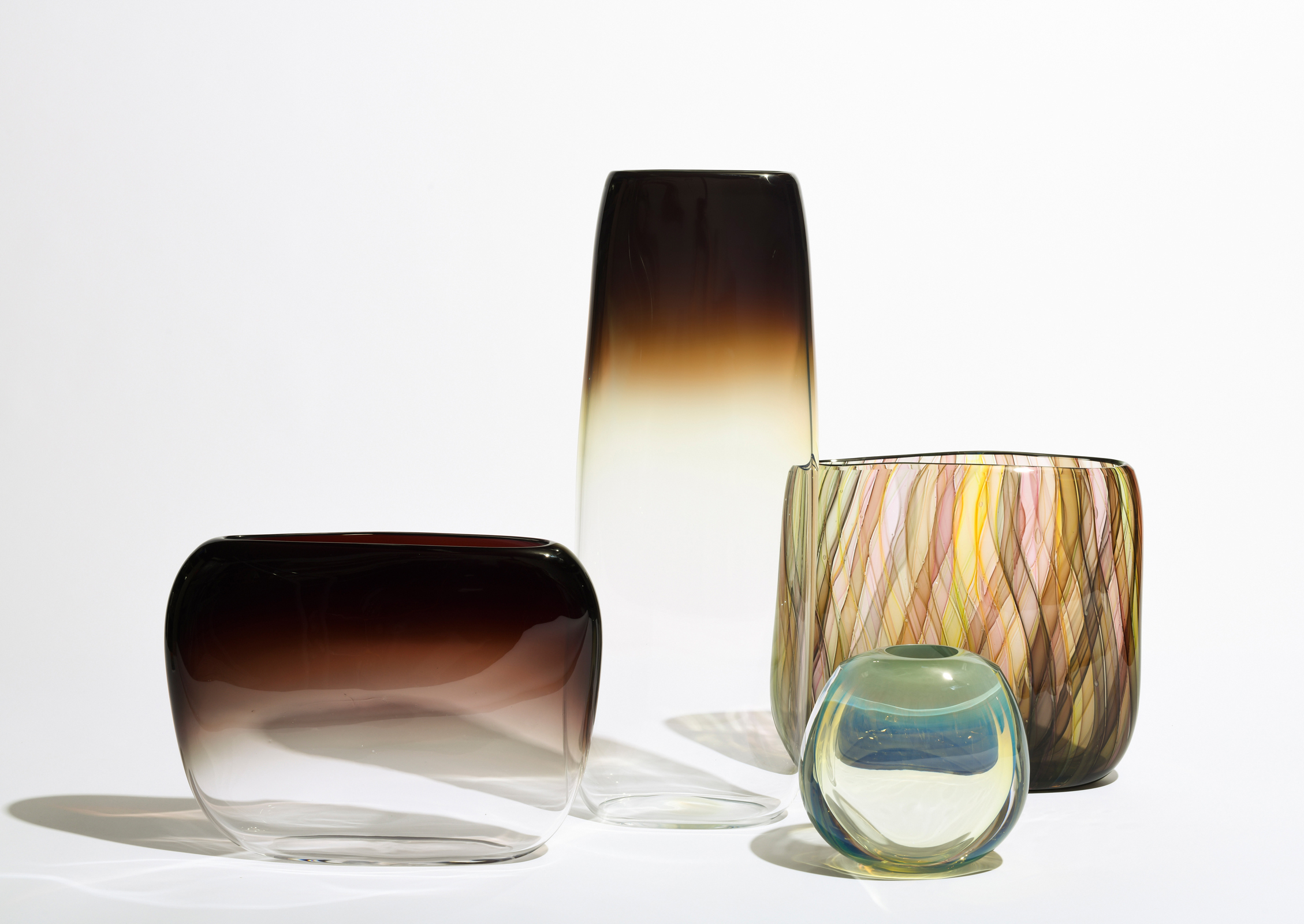 Seattle-based glass artist John Hogan is renowned for his highly distinctive work, skillfully exploring the interplay of color and light. His diverse collection features a range of objects, vessels, and sculptures meticulously crafted using traditional blowing, hot sculpting, and other expert glassmaking techniques. Hogan mesmerizes viewers by guiding their perception along hidden contours and directing their focus to his exquisite craftsmanship - transforming ordinary forms into captivating, indescribable objects.