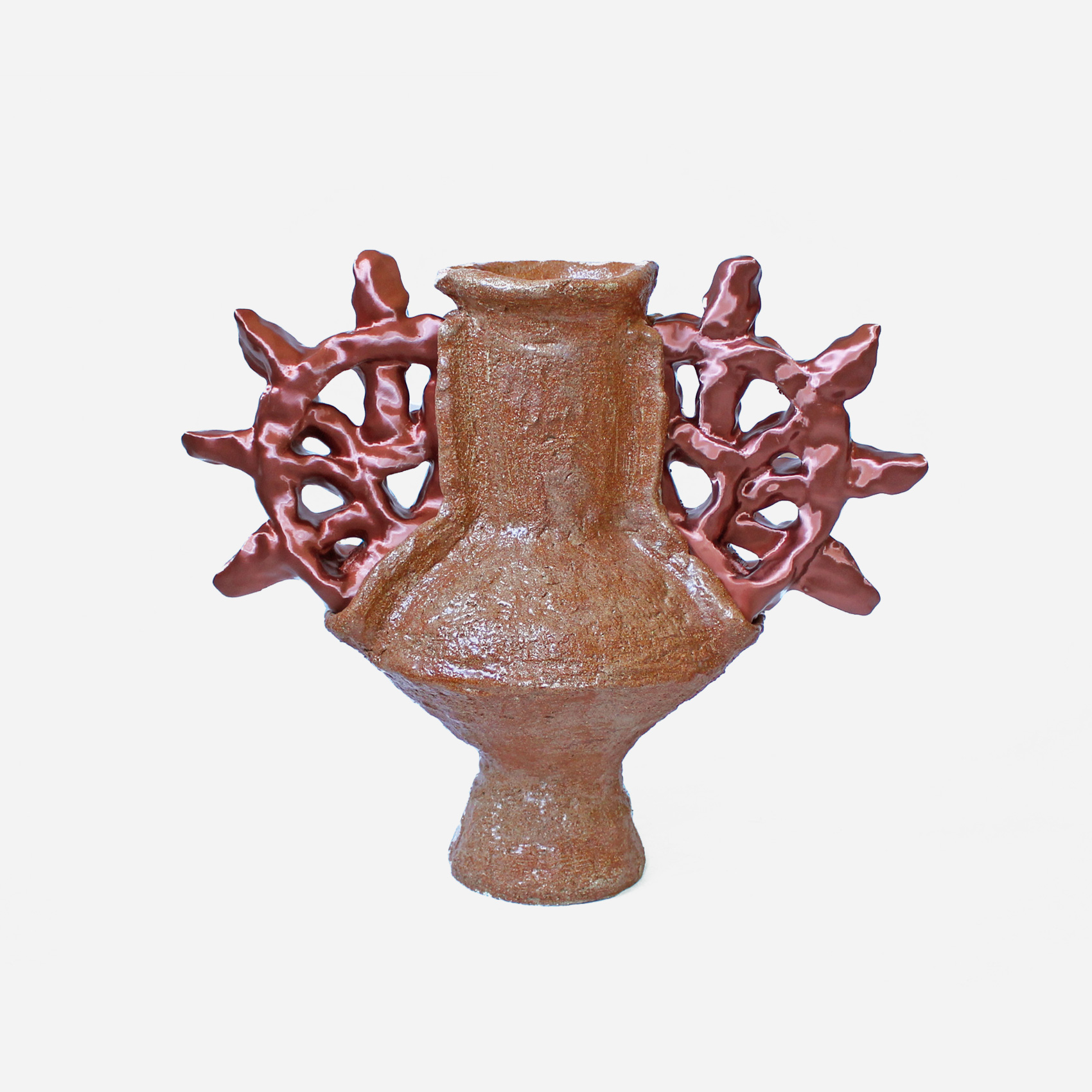 Natalia Triantafylli and Andrew Scott are London-based designers and investigative makers with a shared fascination with material culture and the history of objects. For this collection, they worked together to create a synthesis that blends together the delicate nature of ceramics with organic structures of blackened and waxed steel. Natalia creates the ornate ceramic and porcelain elements with a representational character while Andrew is working with sheets of mild steel: a material which at first seems rigid and cold, but upon manipulation begins to offer up its fluid determination.