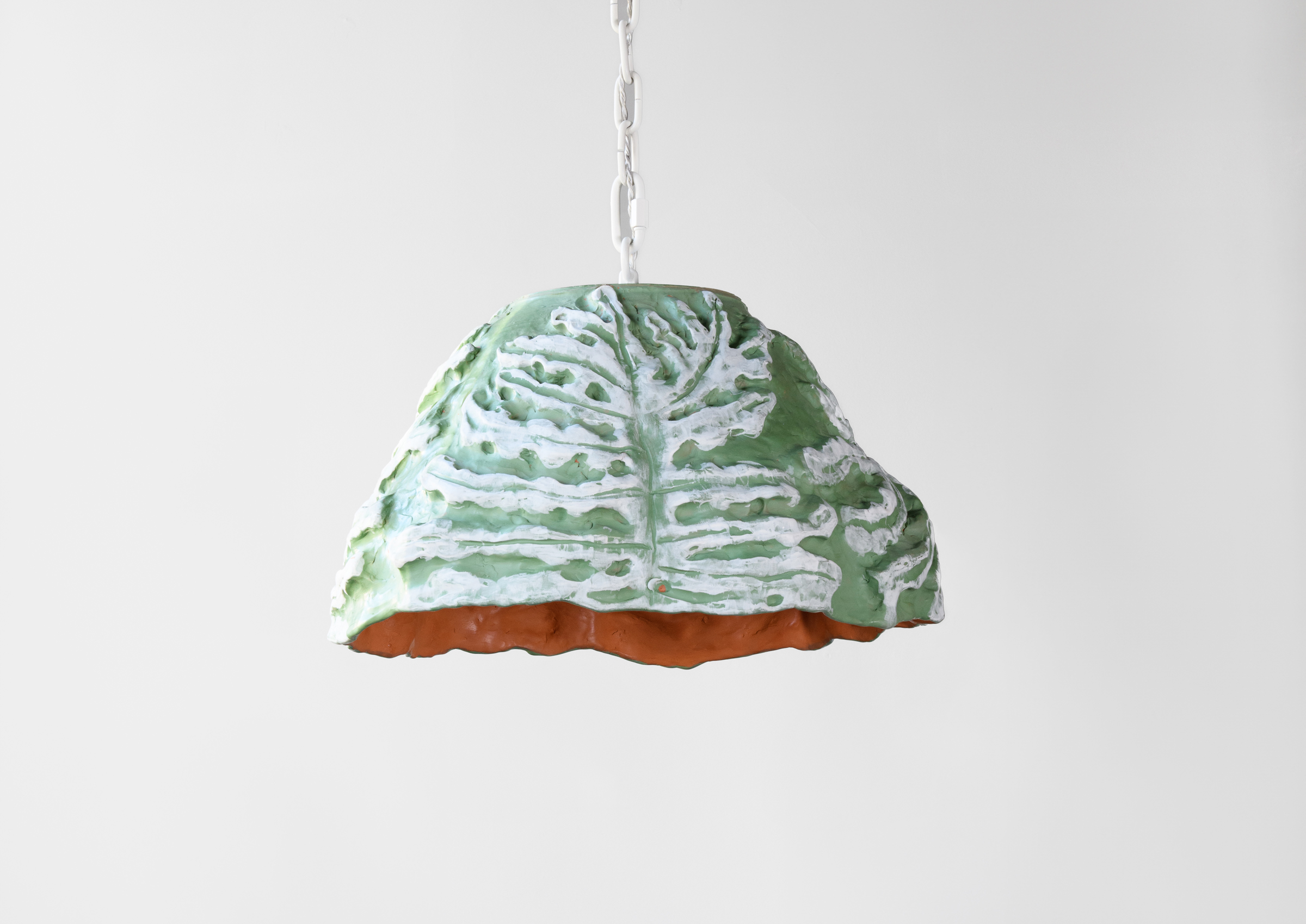 Demonstrating a new direction for artist MyungJim Kim's work, this ceramic pendant channels Korean culture through traditional artistic practices and highlights the botanical and spiritual logic of the artist. Twenty inches in diameter, this light represents a vision of ceramic sculpture that is harmonious, fluid, and rooted in historical reverence. Featured in MyungJin Kim's exhibition Hoot & Bloom at The Future Perfect's San Francisco location, on view January 16-February 27, 2024.