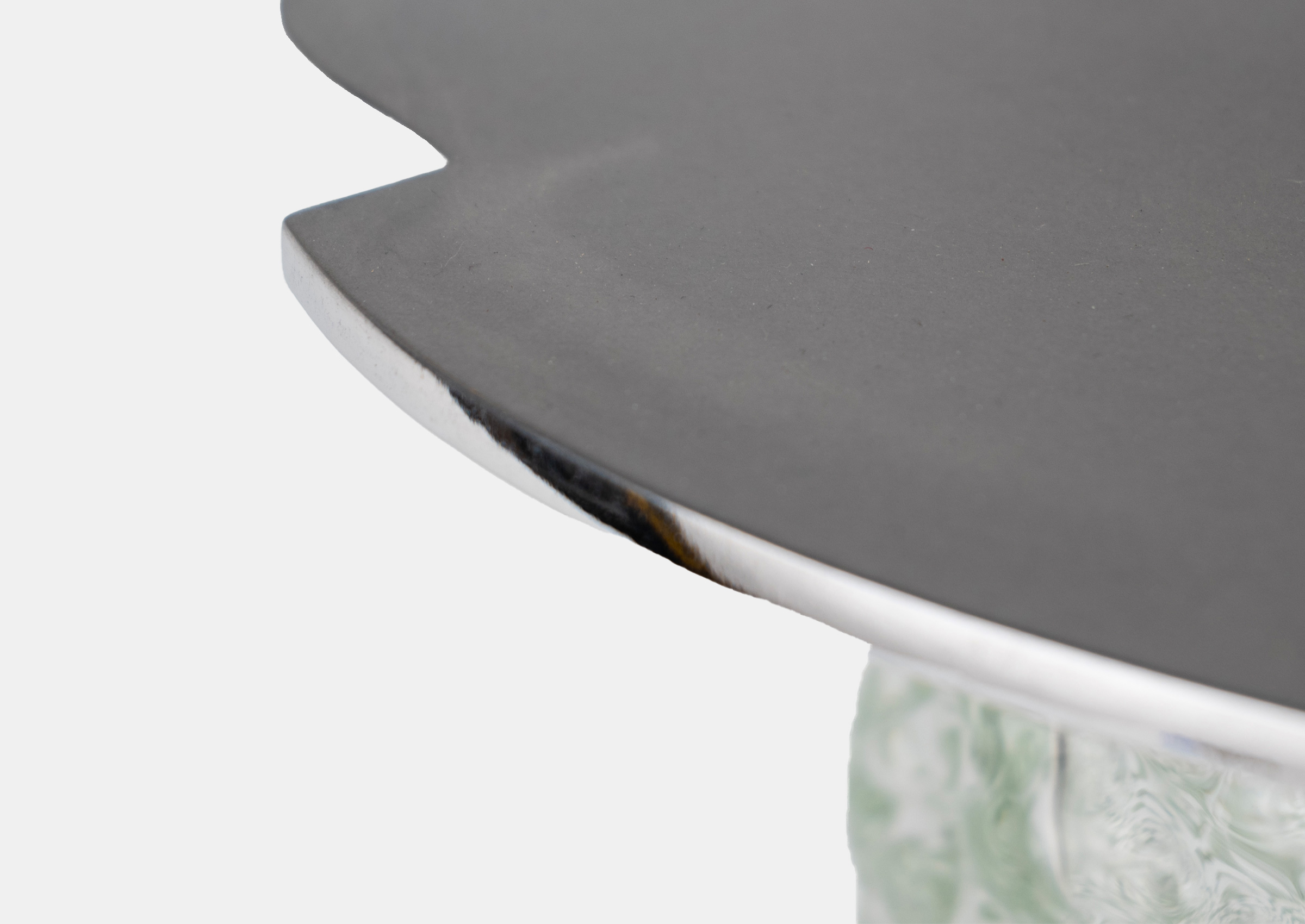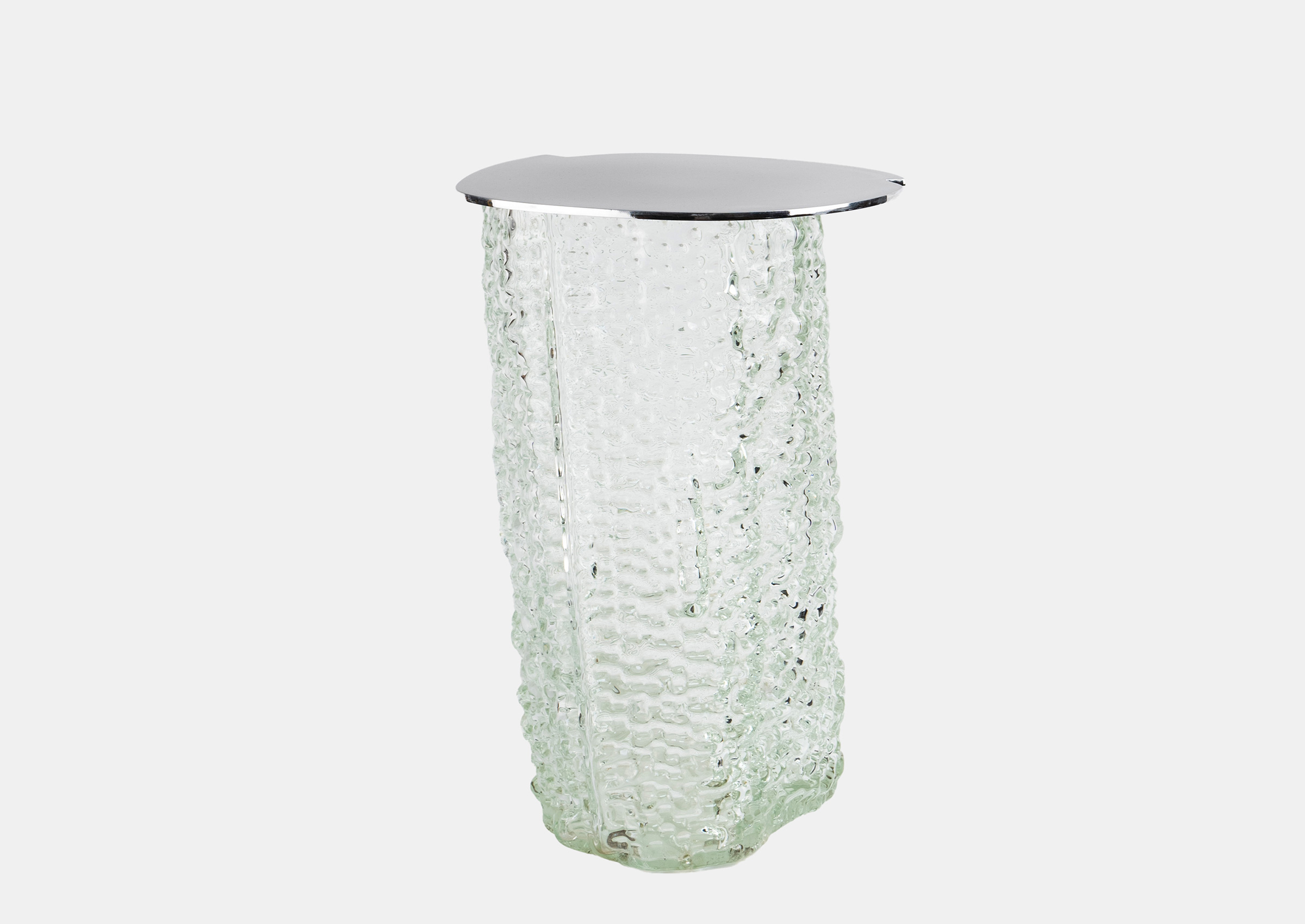 This table from Rafi Ajl features a glass body and a super matte, brushed aluminum top. Compartmentalized and conversational, it is the perfect companion to a host of complementary objects and experiences, displaying a bright and unexpected unity between glass and metal.