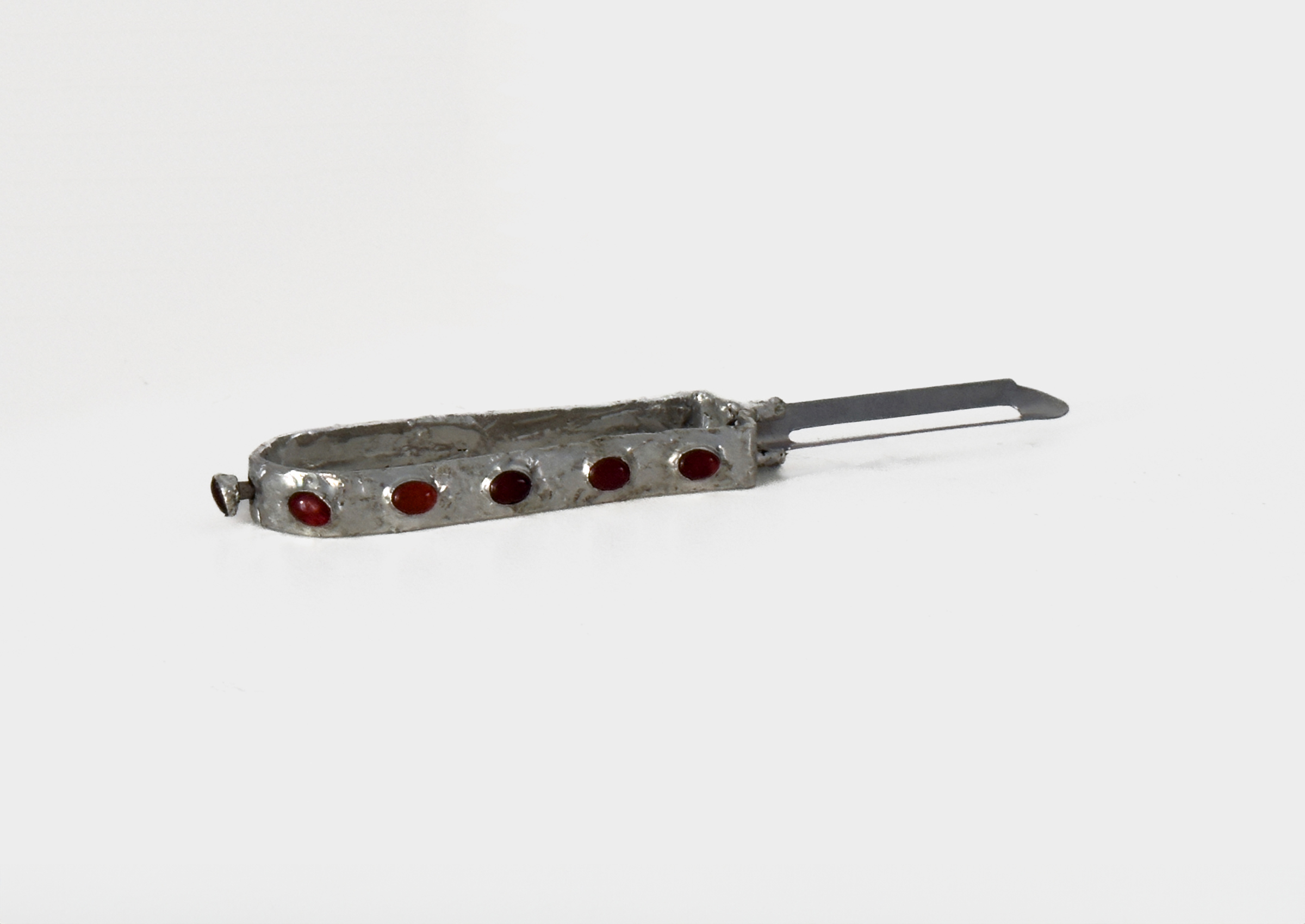 Fire Opal and Tin on Found Objects