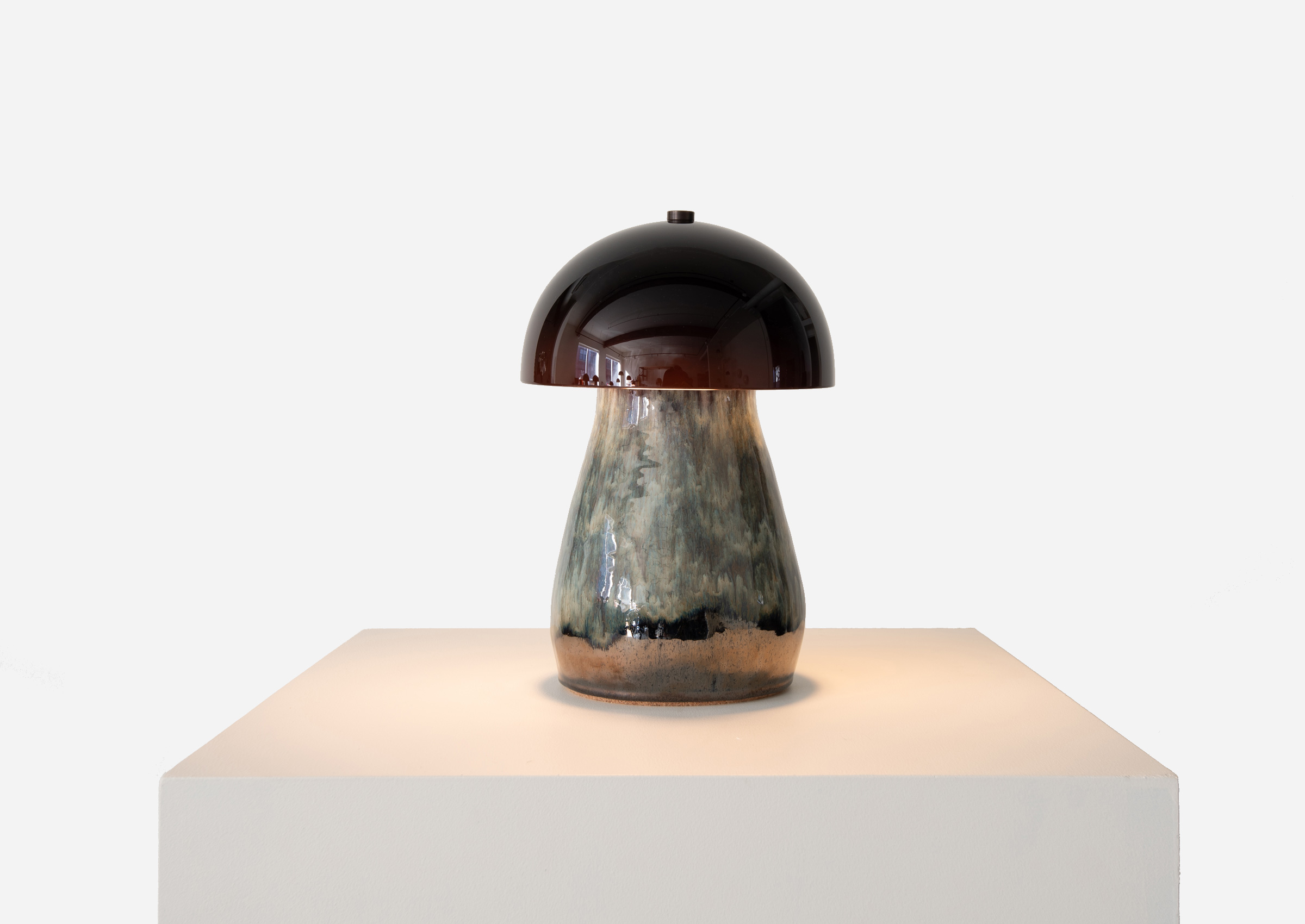 These lamps from Ben & Aja Blanc showcase the duo’s keen understanding of visual nuance and the subtextual potential of ceramic glaze. Layered and captivating, the Pen Bunny Lamp illuminates its own body, establishing its functional nature as a self-contained art viewing context.