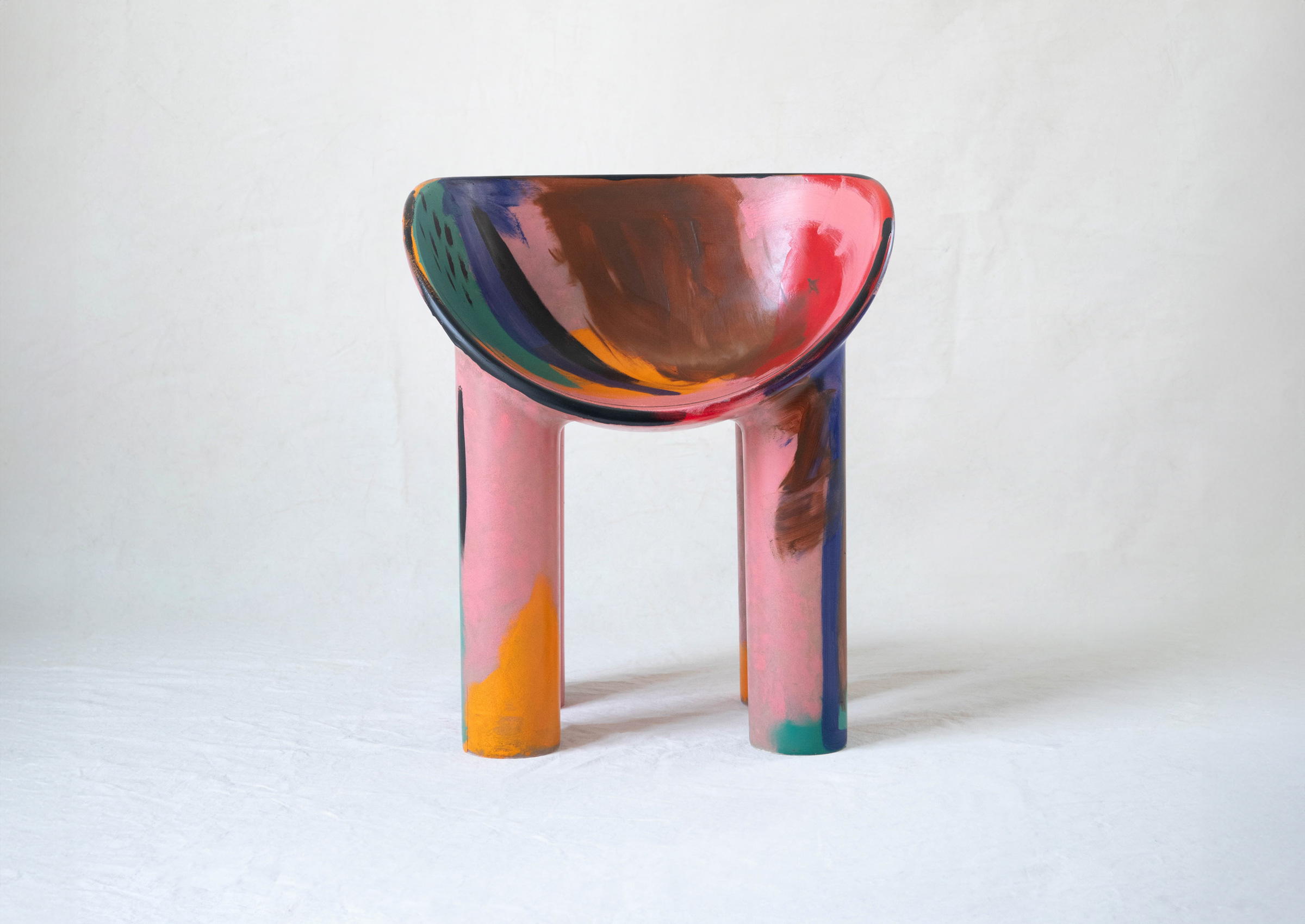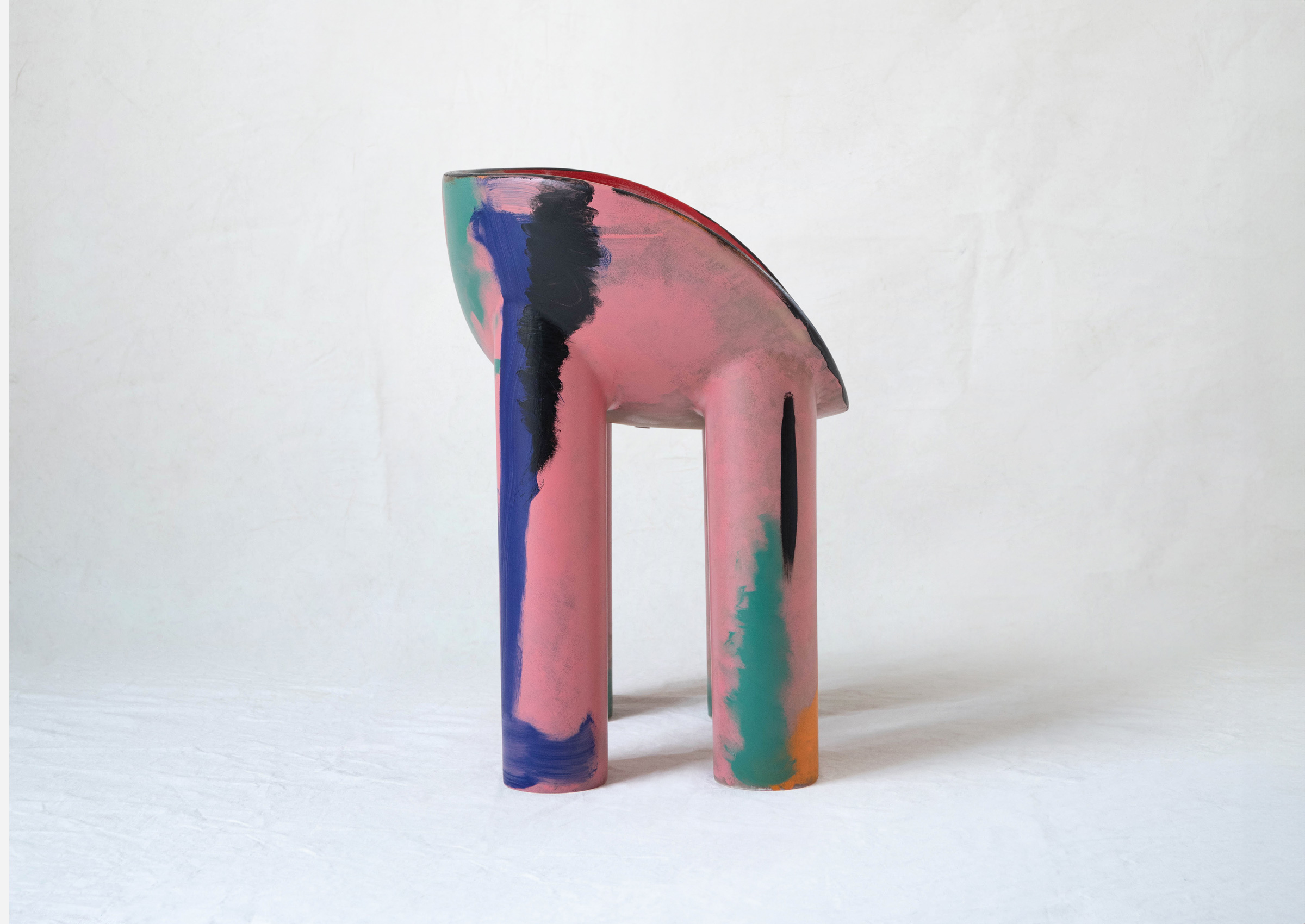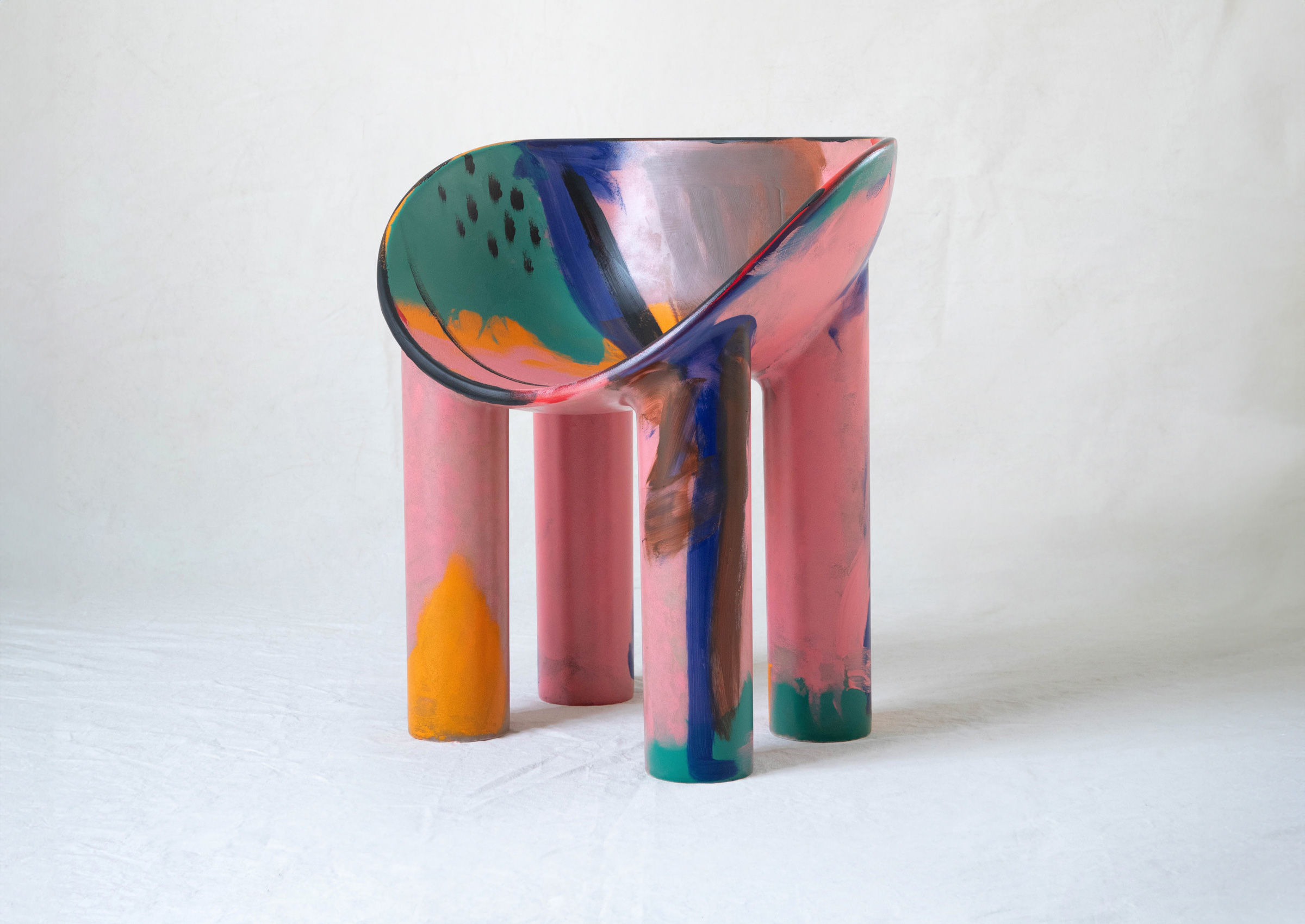 These chairs are sculptural and soft-edged, and their iconic silhouette becomes a canvas—each uniquely painted in fluid, gestural marks. No two are the same, each one a fleeting vision made permanent. Each invites gathering, but more than that—they invite presence.