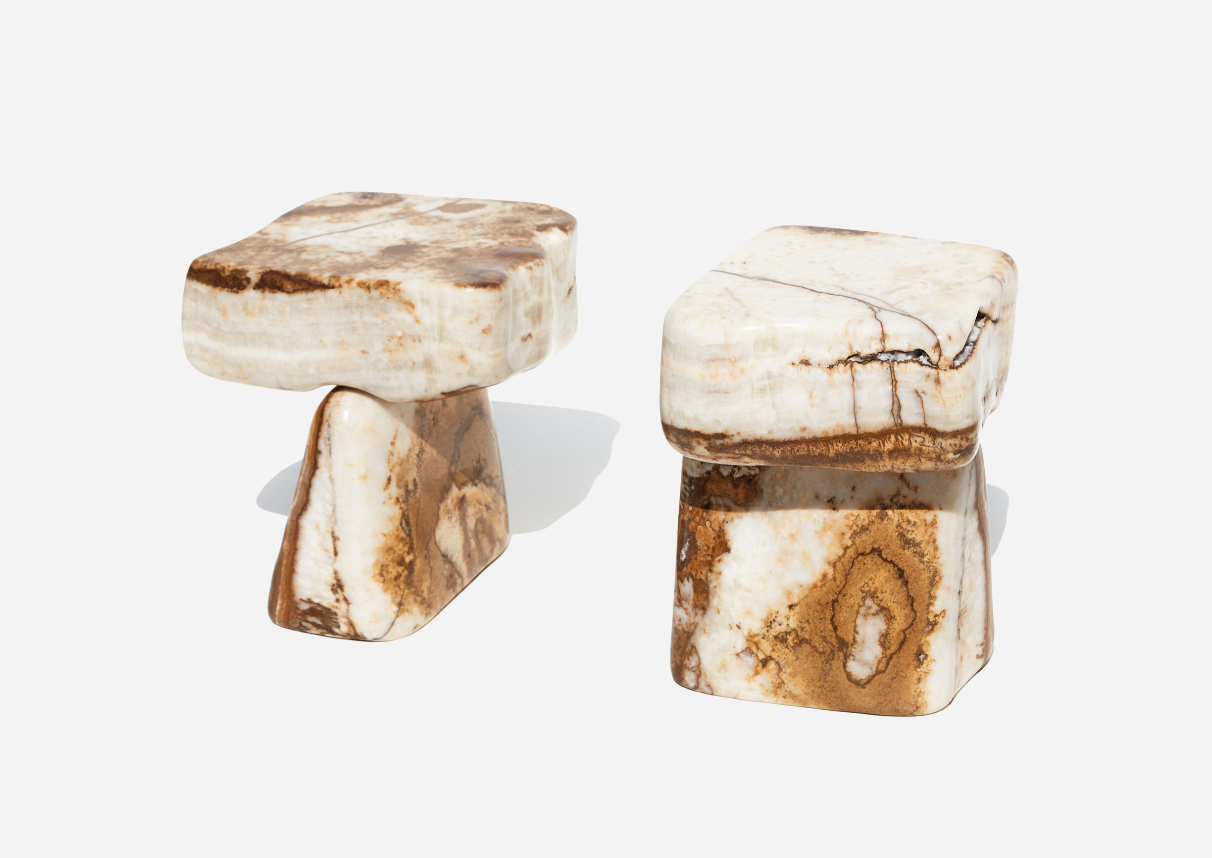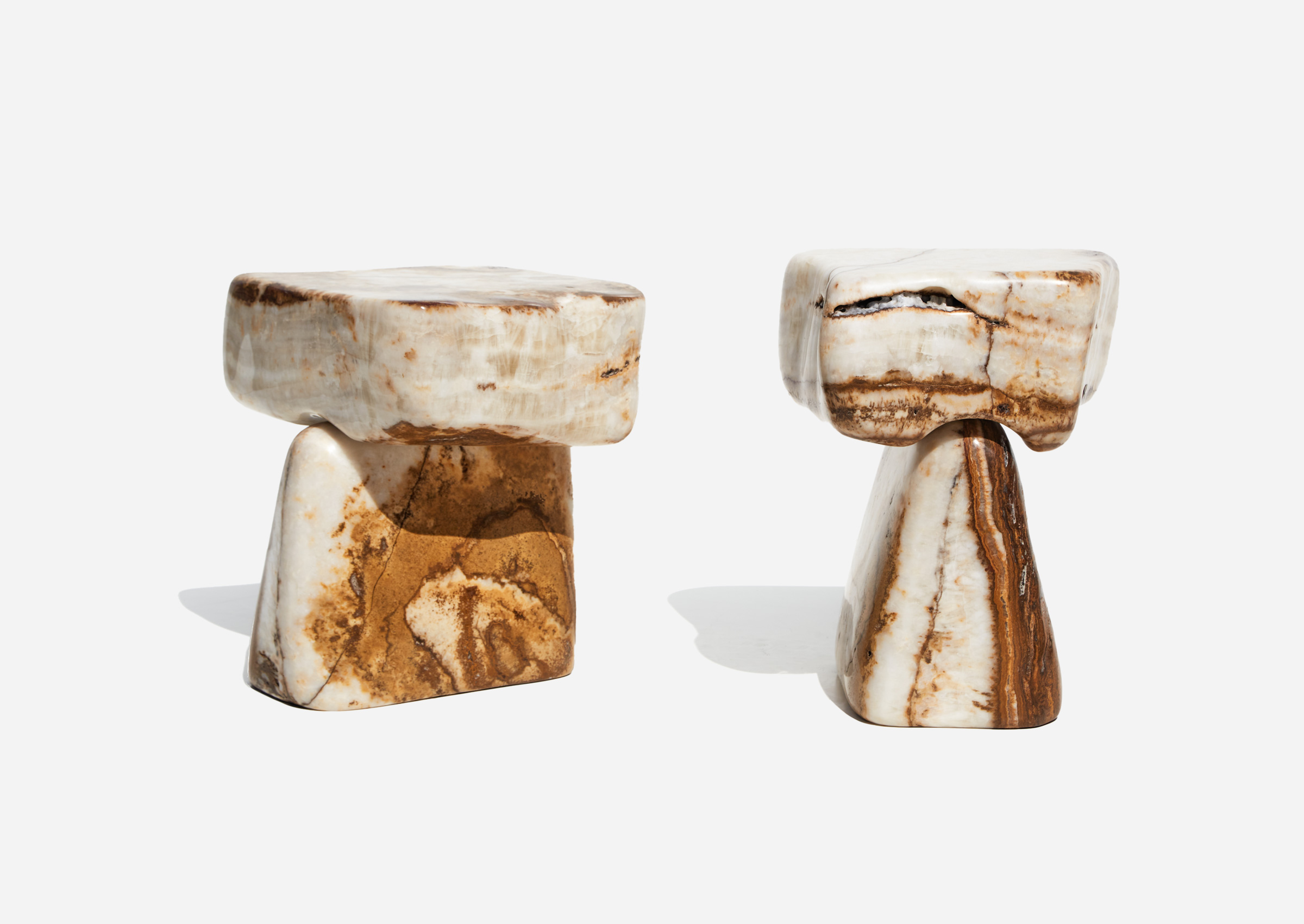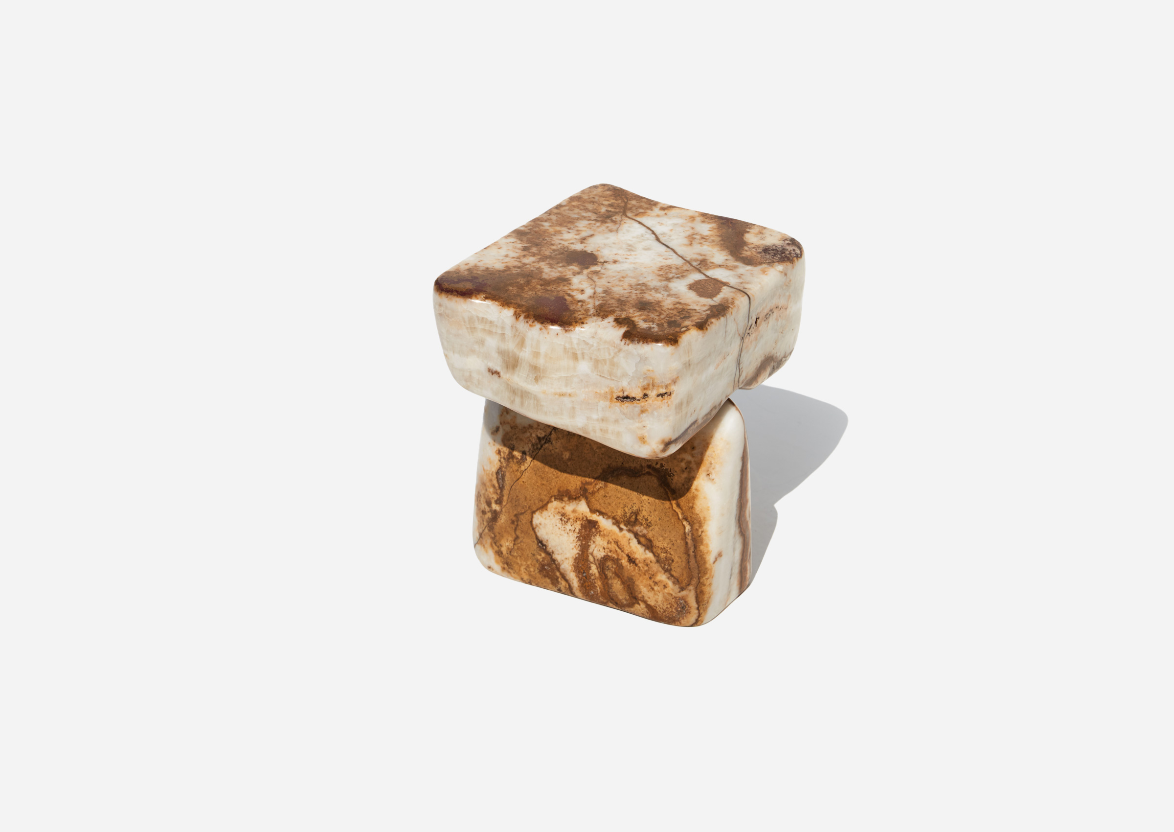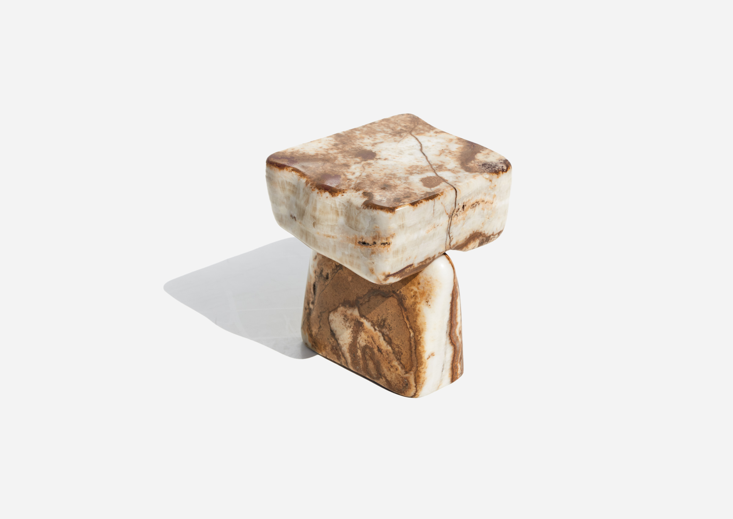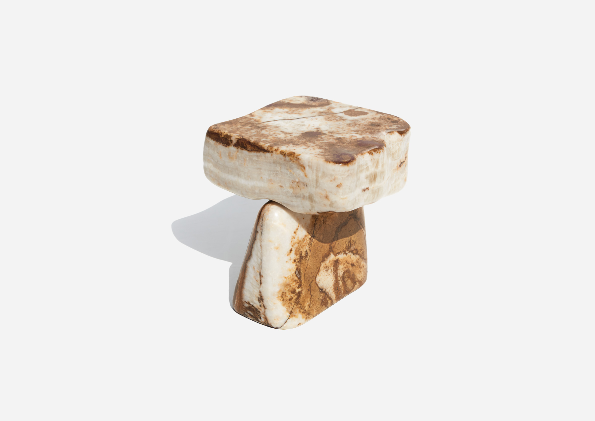Stone Side Table 07 – White and Brown Onyx, 2024