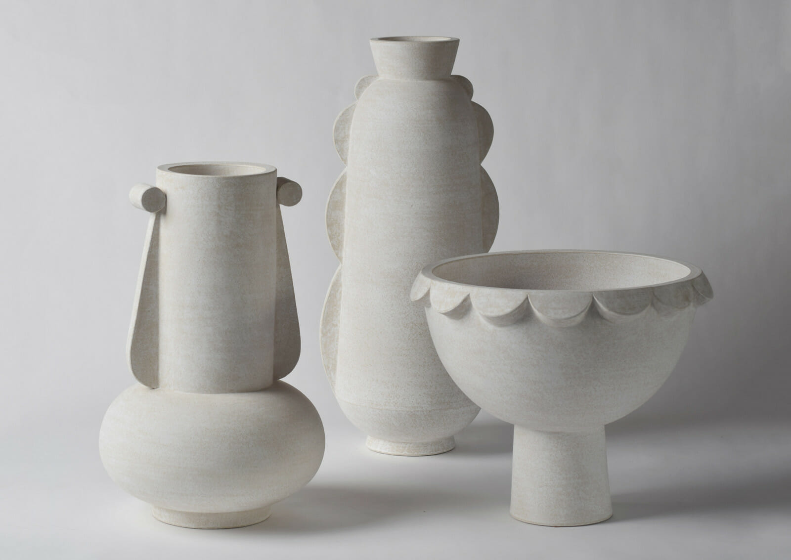 Eric Roinestad's ceramics employ an iconographic language to explore the deeply personal. With a background in graphic design, he wields an instinct for pictorial dialect, infusing his work with both universality and intimacy. His evolution harmonizes diverse aesthetics into a uniquely original approach. Taking influences from Bauhaus pioneer Oskar Schlemmer and the southern California landscape, Roinestad's artistic journey embodies his innovative vision.
