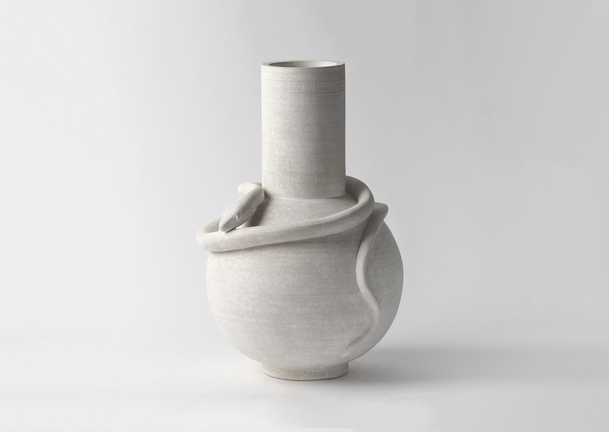 Eric Roinestad's ceramics employ an iconographic language to explore the deeply personal. With a background in graphic design, he wields an instinct for pictorial dialect, infusing his work with both universality and intimacy. His evolution harmonizes diverse aesthetics into a uniquely original approach. Taking influences from Bauhaus pioneer Oskar Schlemmer and the southern California landscape, Roinestad's artistic journey embodies his innovative vision.
