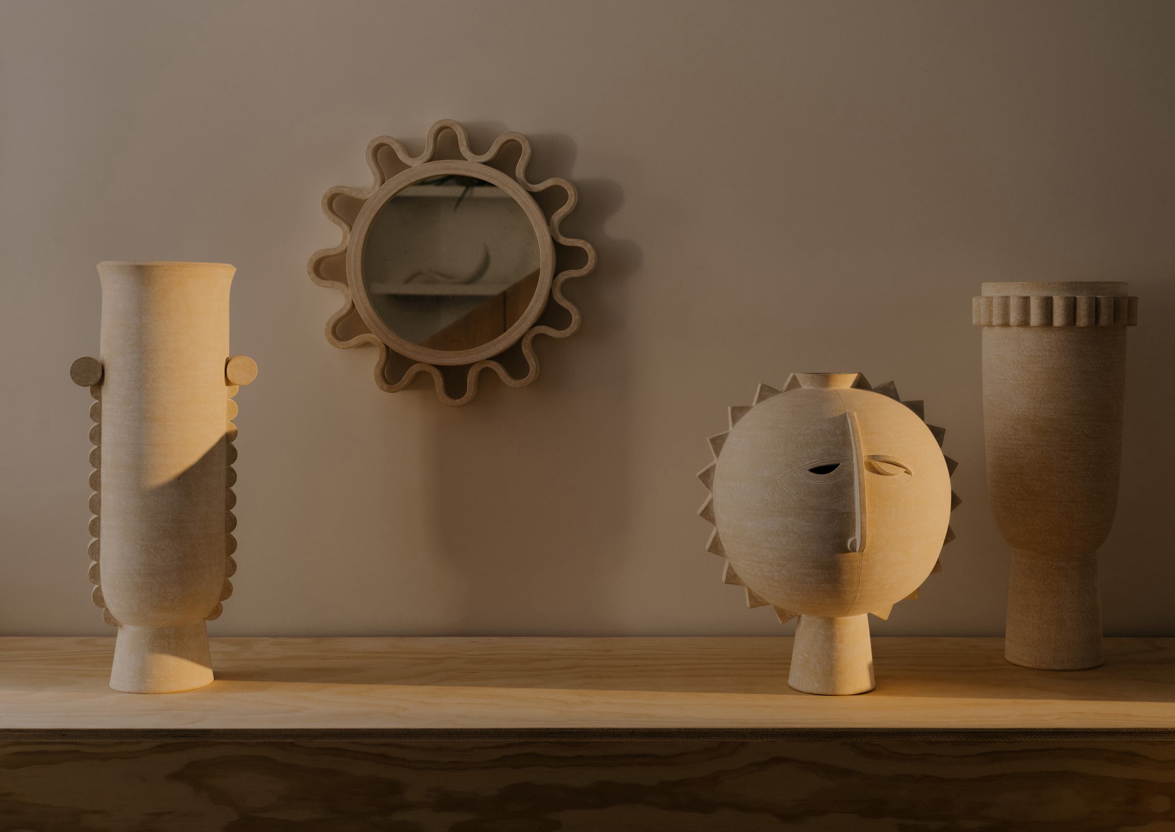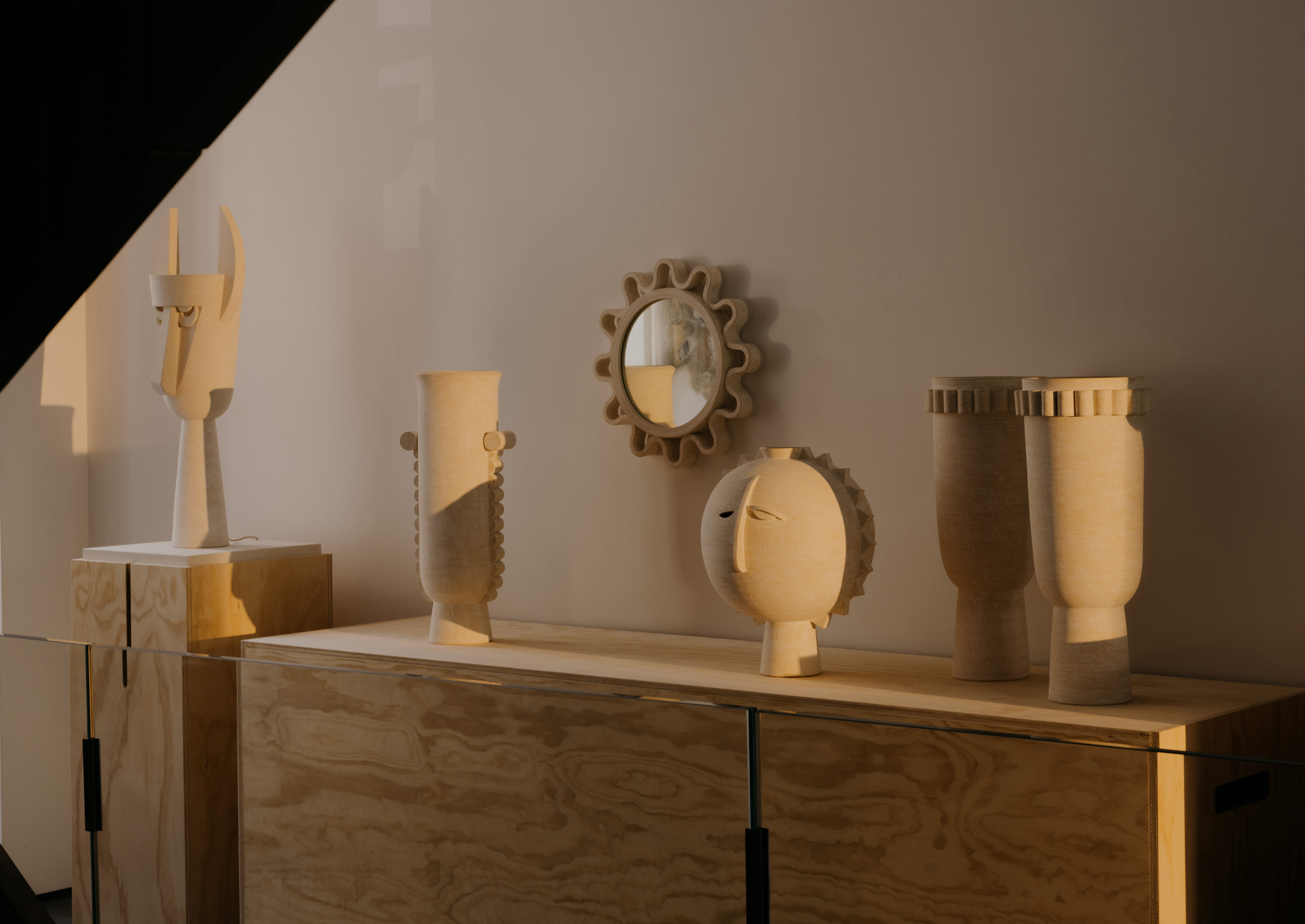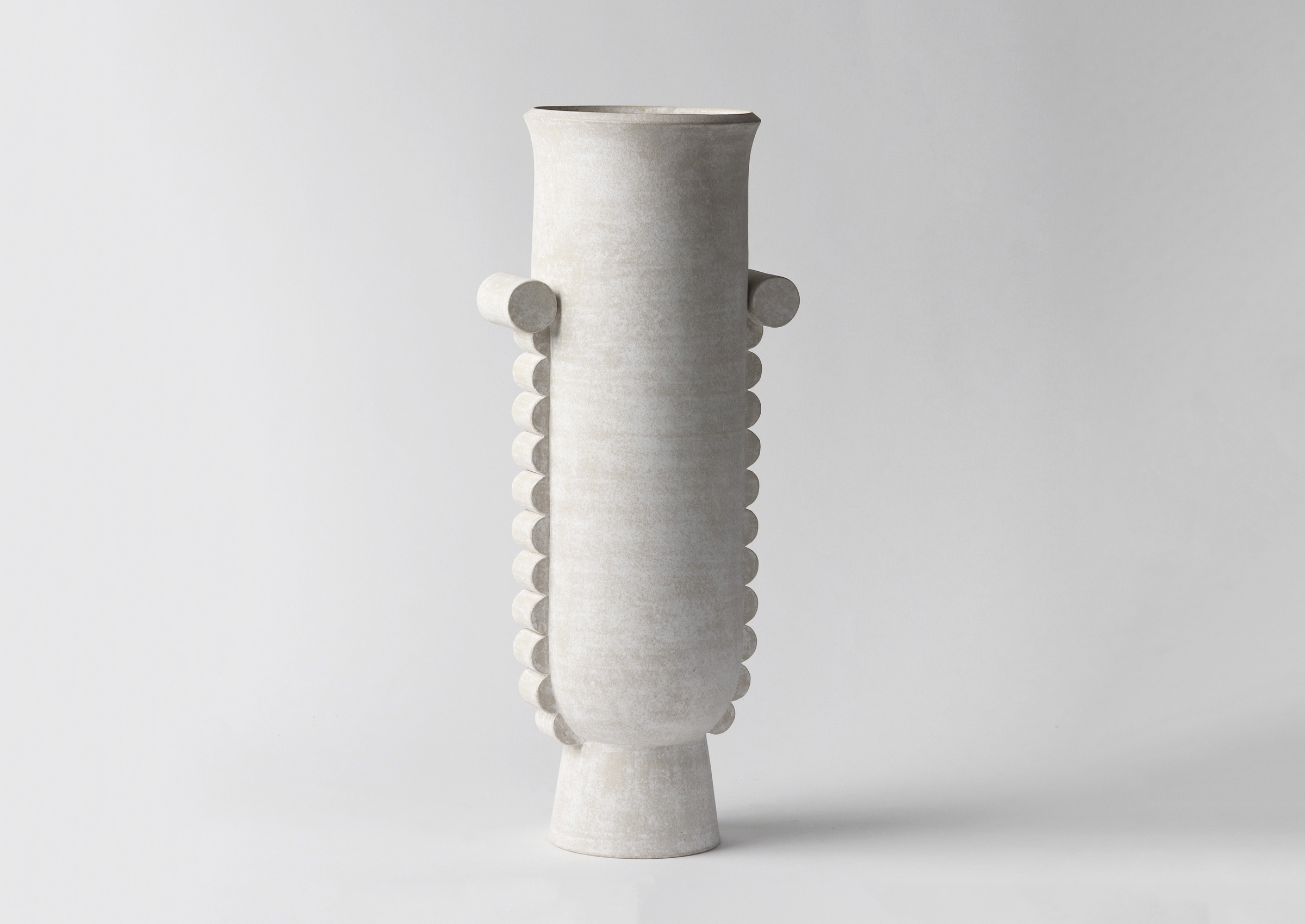 Eric Roinestad's ceramics employ an iconographic language to explore the deeply personal. With a background in graphic design, he wields an instinct for pictorial dialect, infusing his work with both universality and intimacy. His evolution harmonizes diverse aesthetics into a uniquely original approach. Taking influences from Bauhaus pioneer Oskar Schlemmer and the southern California landscape, Roinestad's artistic journey embodies his innovative vision.