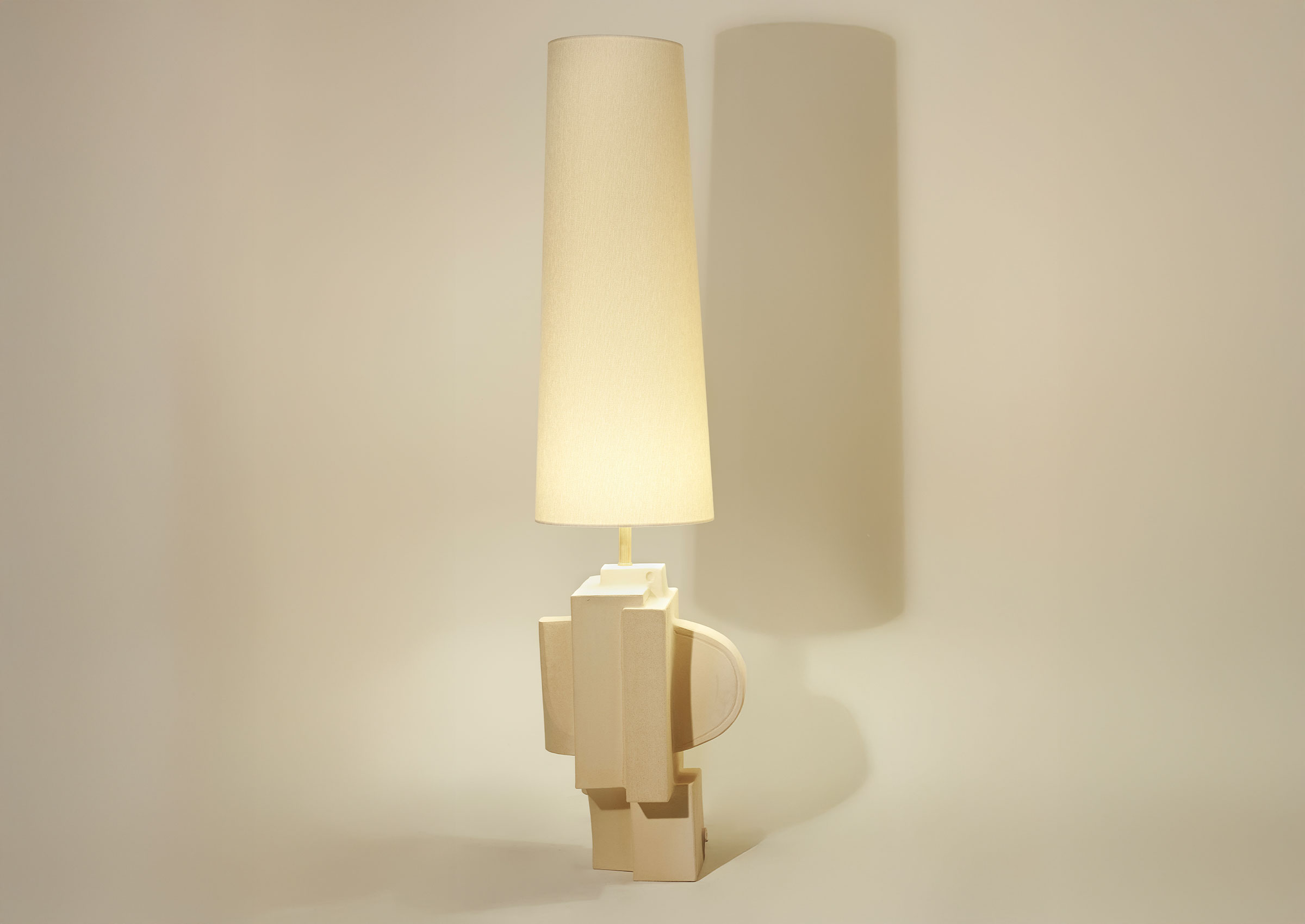 Olivia Cognet’s Vallauris Floor Lamps are indicative of the artist’s larger project, which understands the physicality of images as something granted, and thus easily finds the visual architecture within sculptural objects. Presented as an almost Platonic lightsource, these lamps use the timelessness of their functionality as a medium.