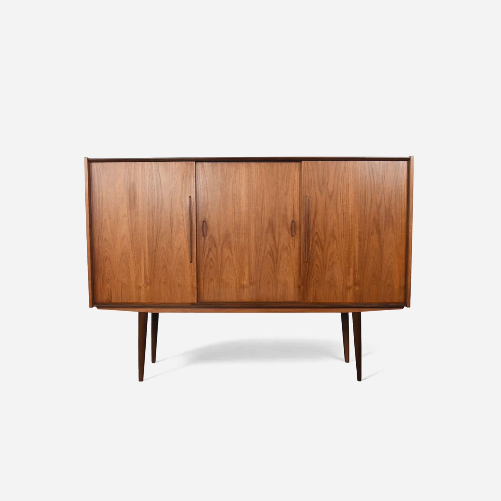 Danish Modern Tall Teak Credenza With Sliding Doors