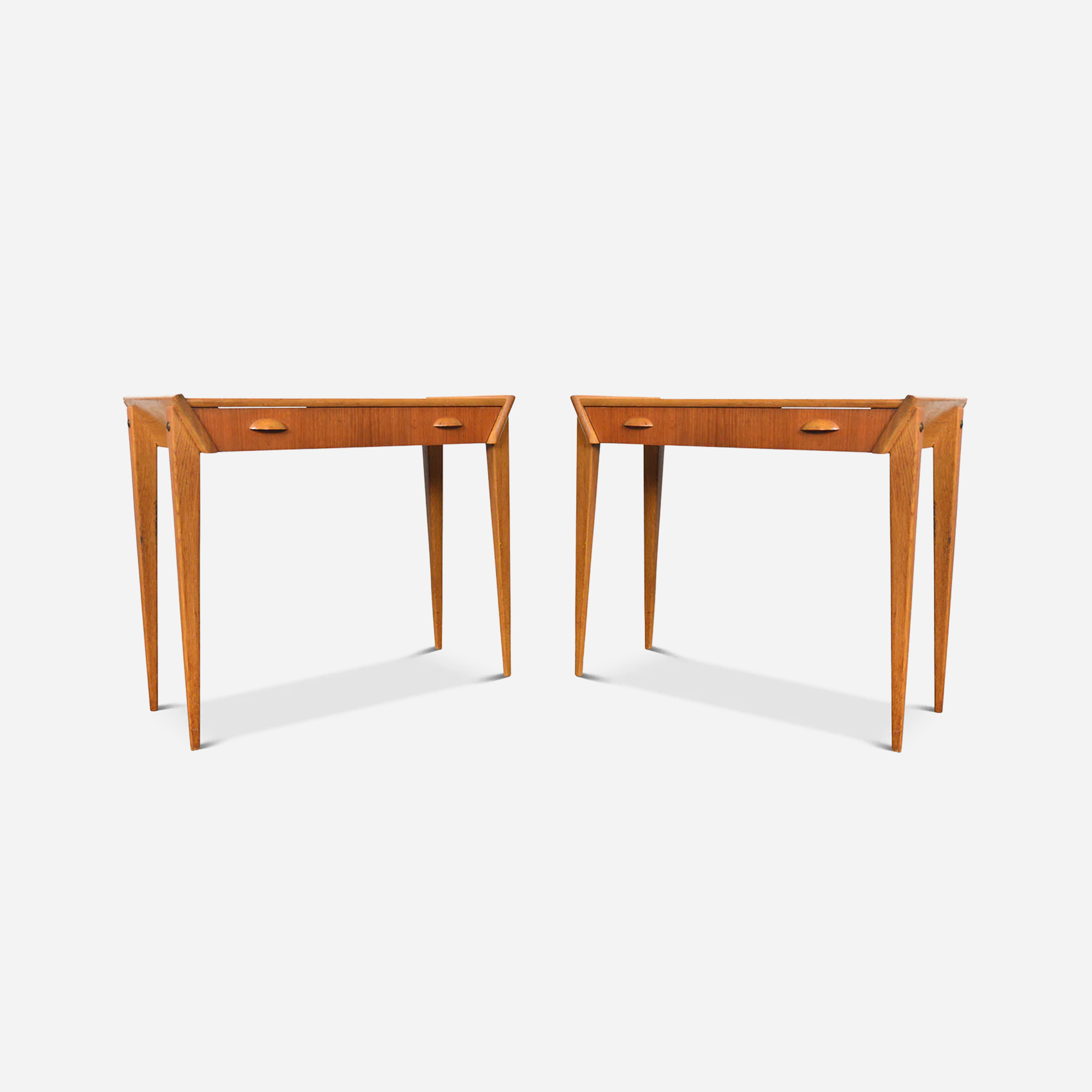 Pair Of Atomic Teak + Oak Swedish Modern Nightstands