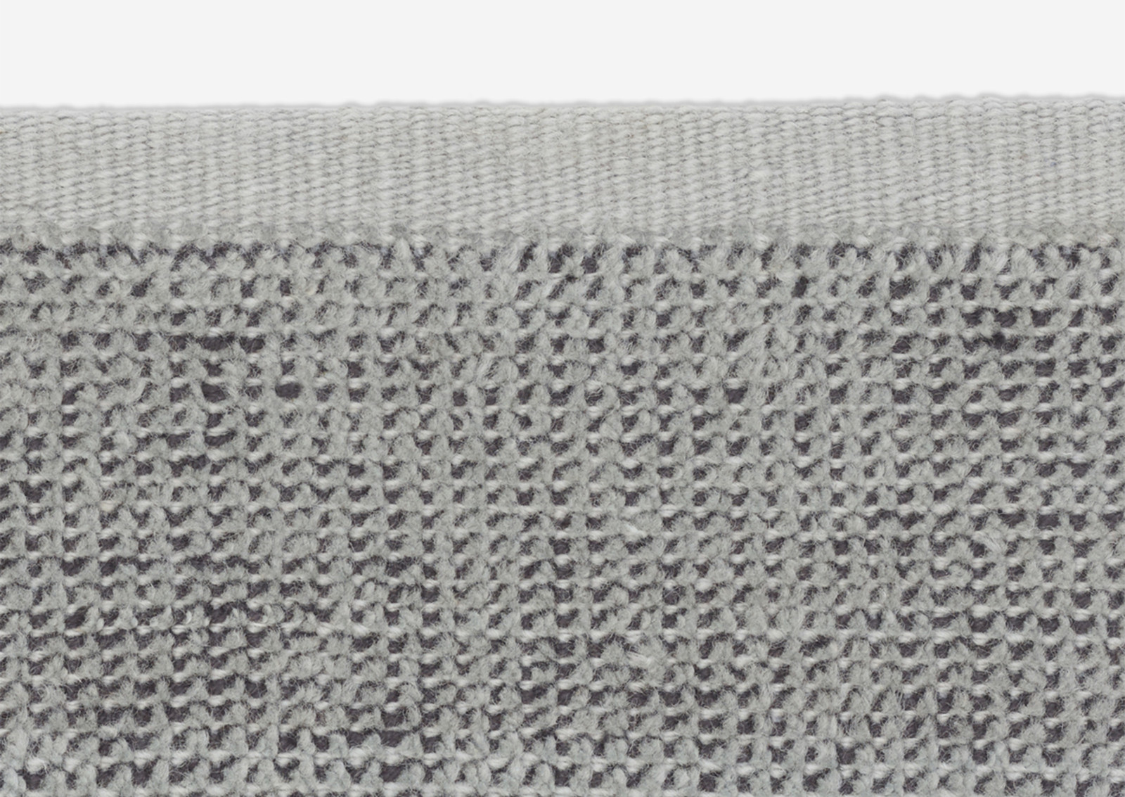 Kanon is a hand-knotted, hand-woven rug, that fuses different contrasting colors, materials, and techniques into one harmonious expression. It features an extremely short, hand-sheared pile characterized by simple elegance. The rug’s subtle differences in pile height, tactile velvety feel, and contrasting flatweave are completed by a dense woven border.