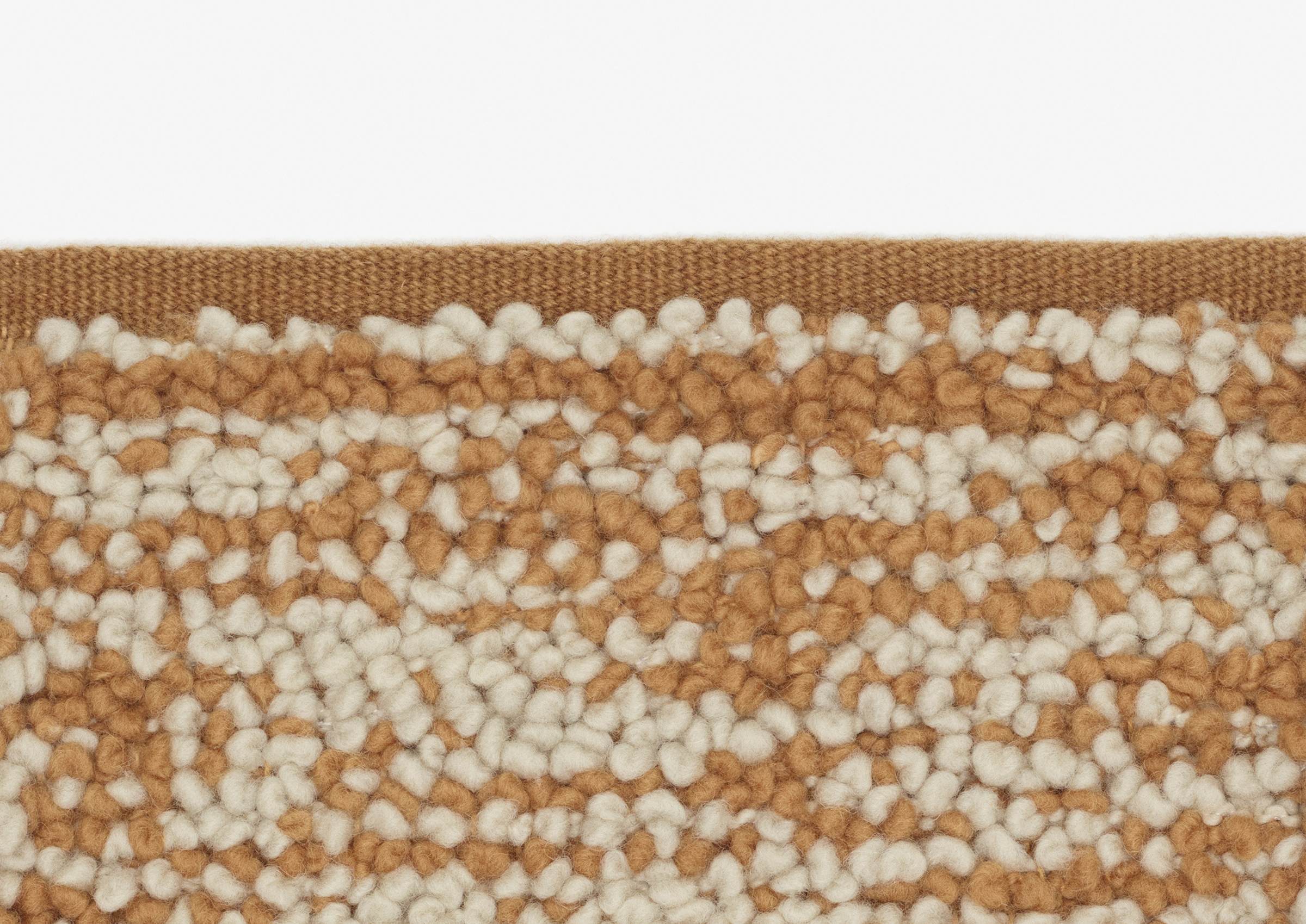 Mellow is a handwoven woolen rug crafted from soft and voluminous boucle yarns. It offers outstanding natural comfort, pronounced depth, and rich tactility. Characterized by duality, it contrasts different dimensions of texture and non-texture, and color and non-color, evoking different wavelengths that rhythmically ebb and flow. It comes in eight sophisticated colorways: Chalk, Pebble, Sand, Basalt, Charcoal, Gold, Canyon, and Ocean, which all underline its organic expression.