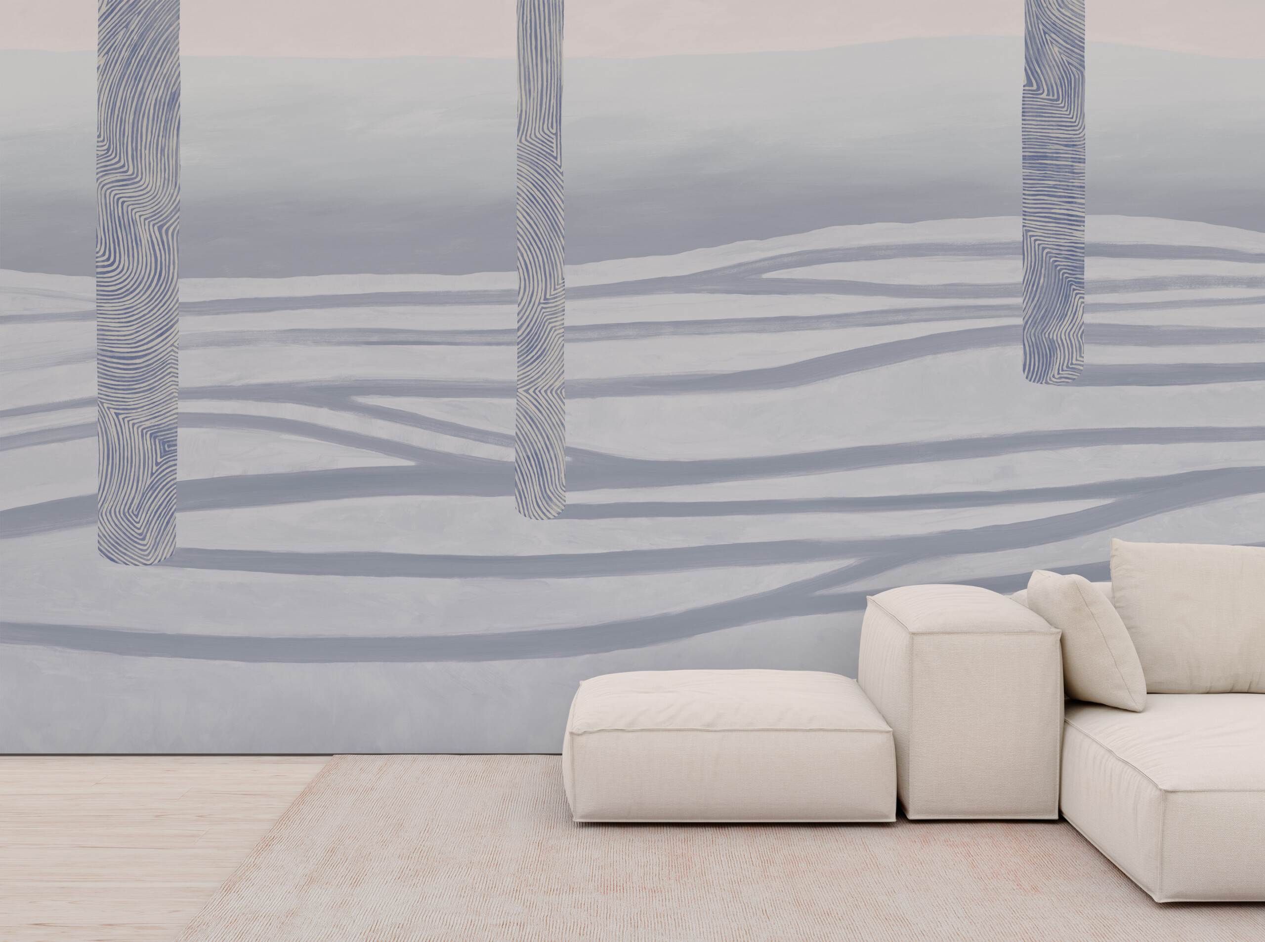Sylvan is one of two unique hand-painted patterns created with guest designer Kelly Behun of Kelly Behun Studio. Each originates from a fascination with the way light changes throughout the day and year, exploring the hypnotic effect of sunlight’s interaction with the world around us. The inspiration for Sylvan lies in the shadows cast by trees on snow-covered mountains.