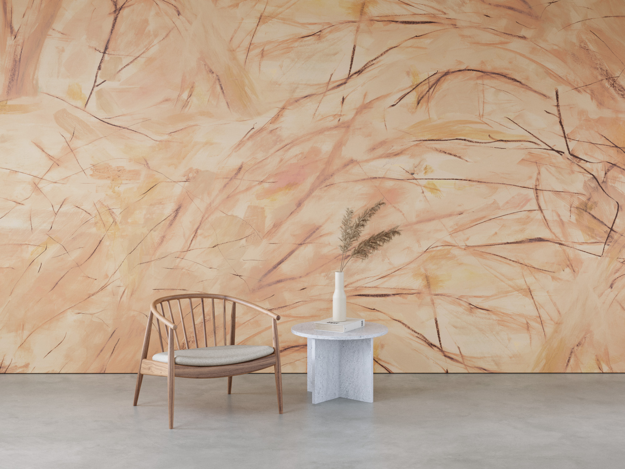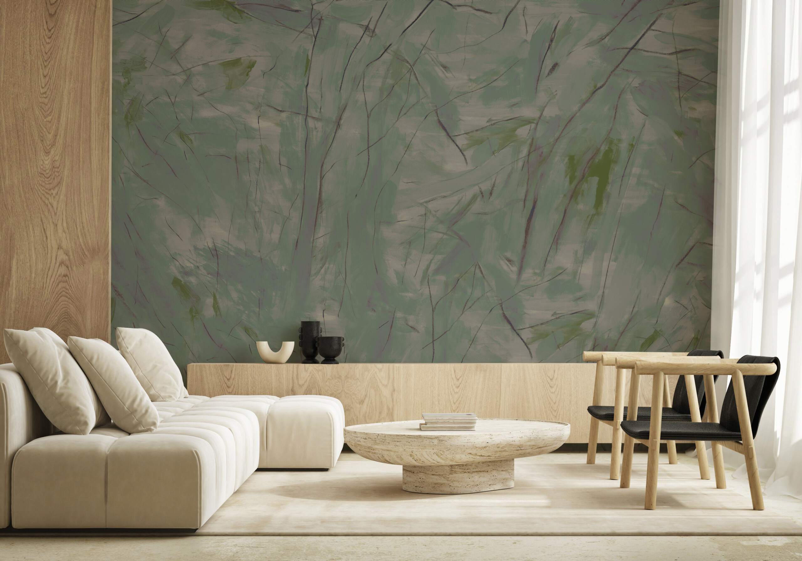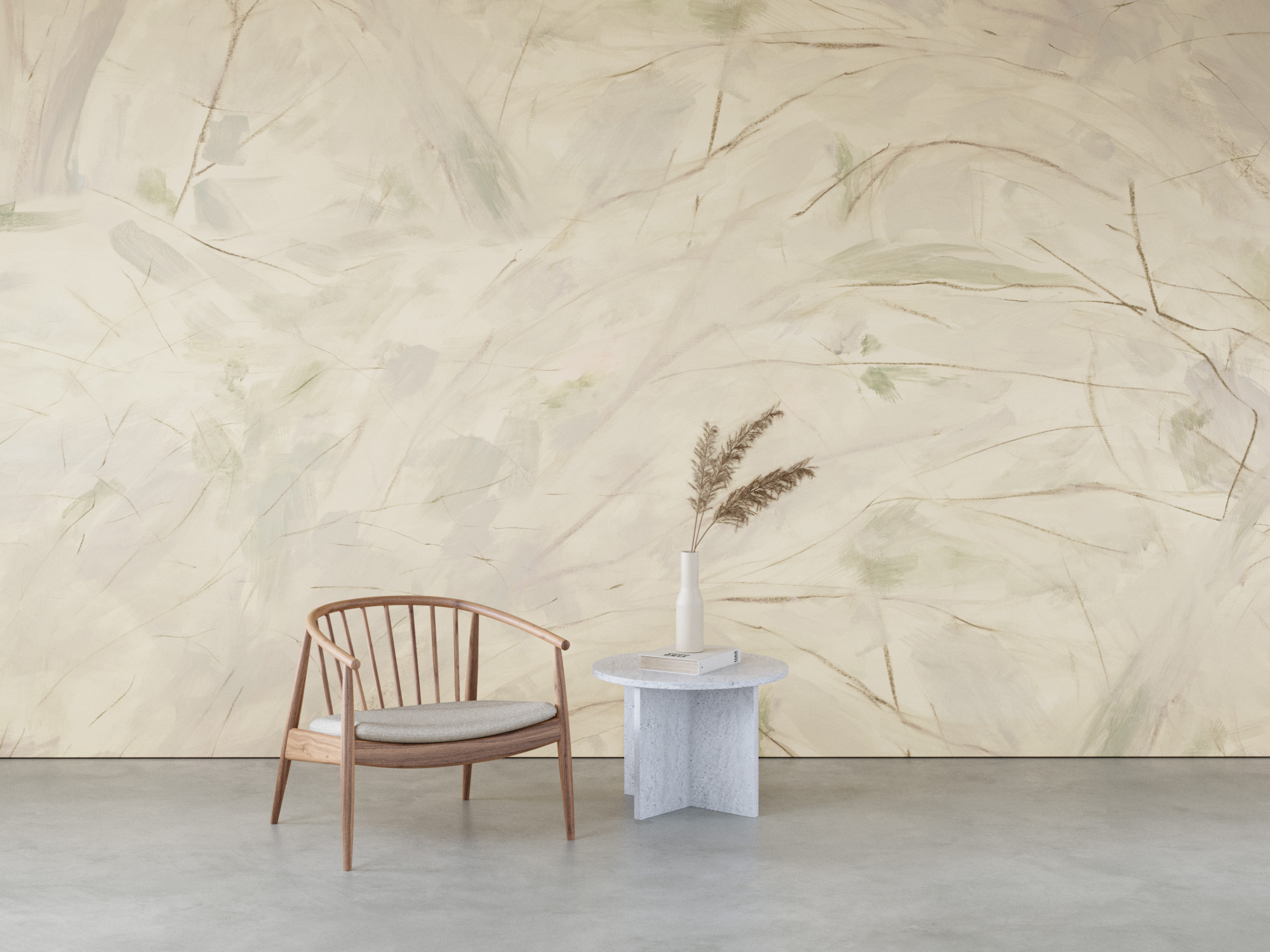 Inspired by the drawings and watercolors of Paul Cézanne, whose prismatic landscapes resemble the complex patterns that occur when peering through a kaleidoscope, we crafted a design that arrays a captivating patchwork of color across the wall. Combining loose, evocative lines with expansive washes, the shape of each brushstroke evokes a sense of continual evolution, capturing the dynamic spark that is at the heart of all living things. Touches of vibrant hues give the design a diaphanous quality–with hints of light and color creating a sense of perpetual motion. Dreamlike, the subject recedes into abstraction, swept along by the momentum of the natural forces at play.